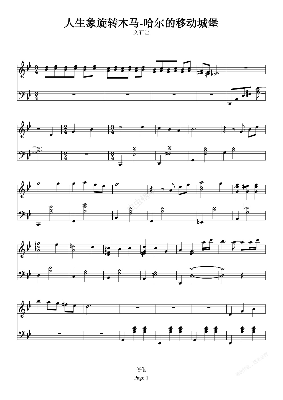 钢琴谱:人生象旋转木马-哈尔的移动城堡