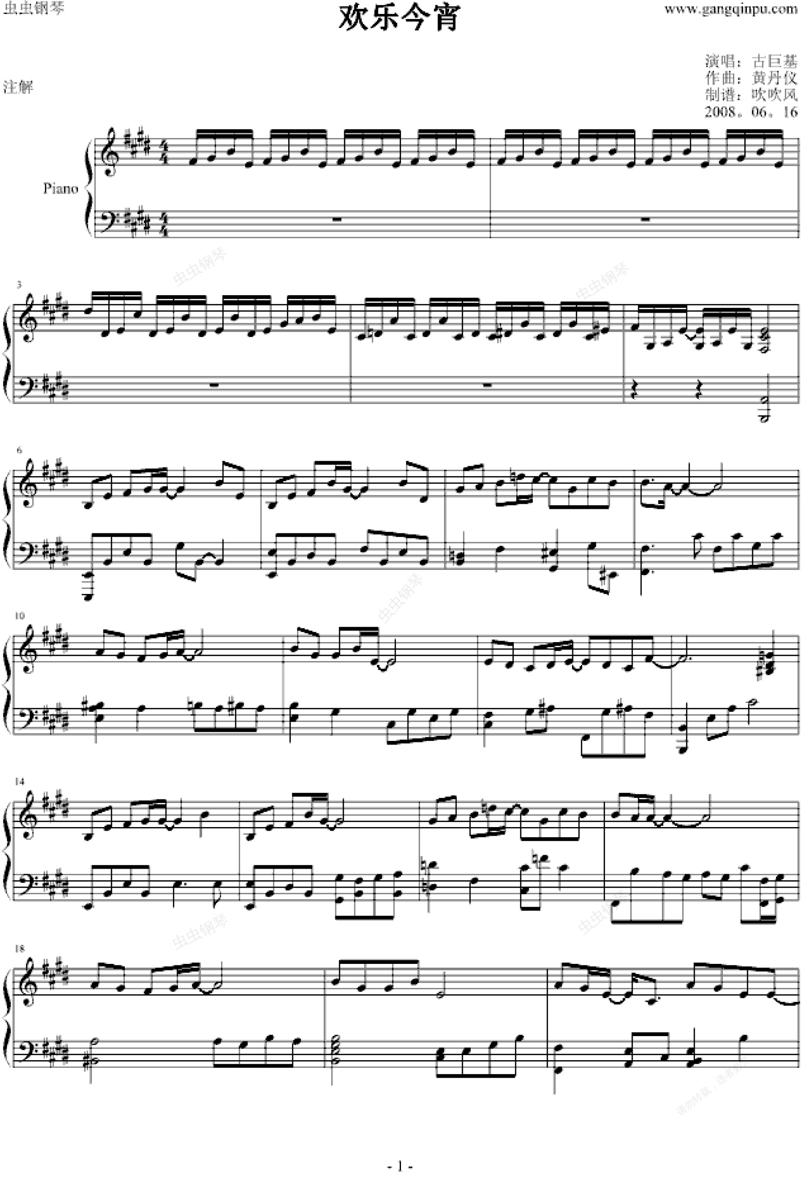 钢琴谱:古巨基-欢乐今宵