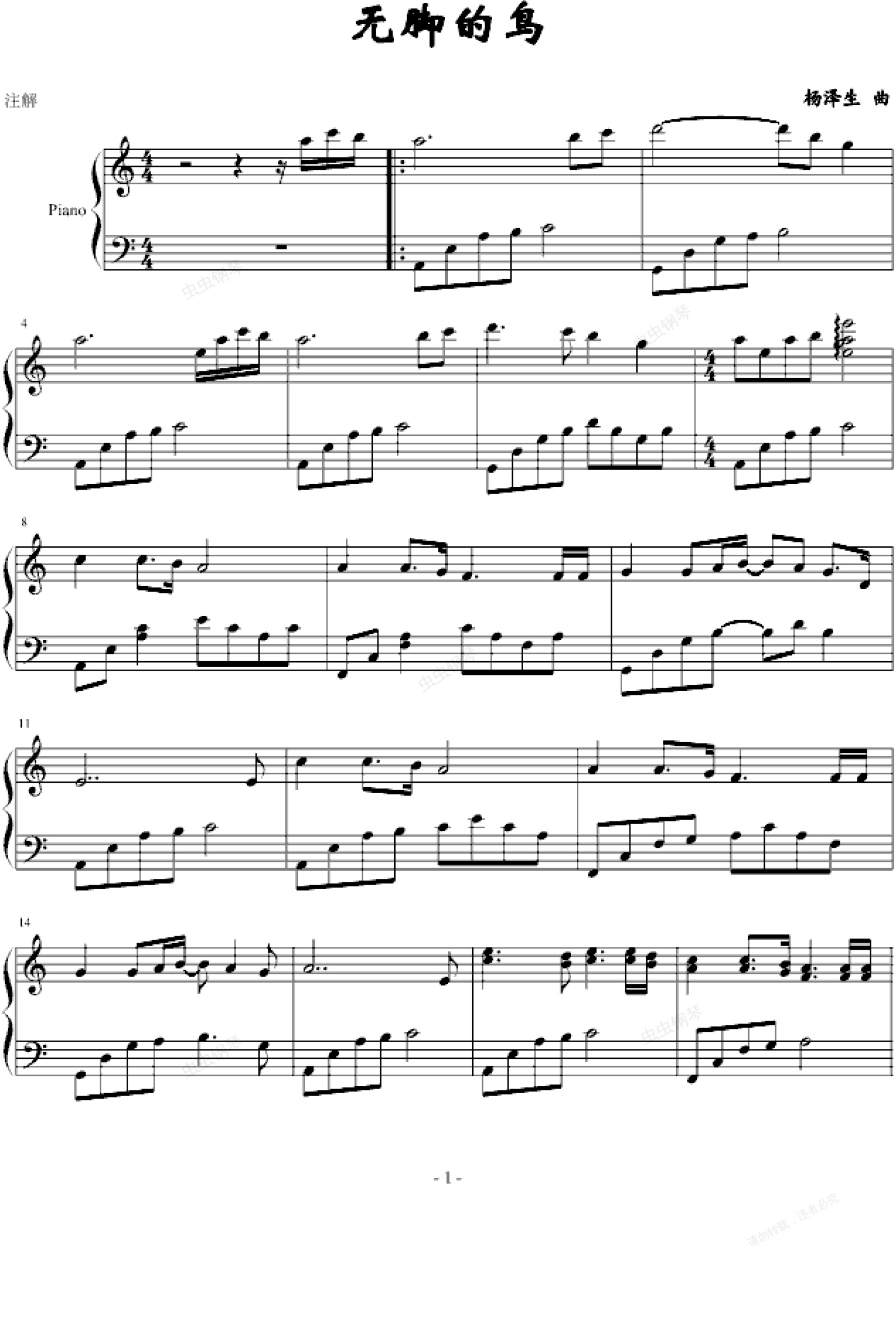 钢琴谱:无脚的鸟