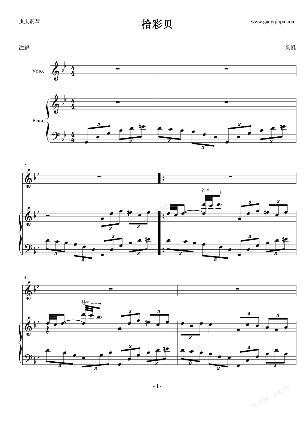 钢琴谱:拾彩贝
