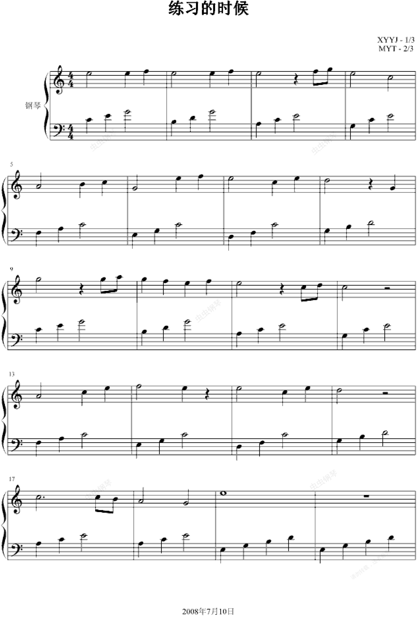 钢琴谱:练习的时候