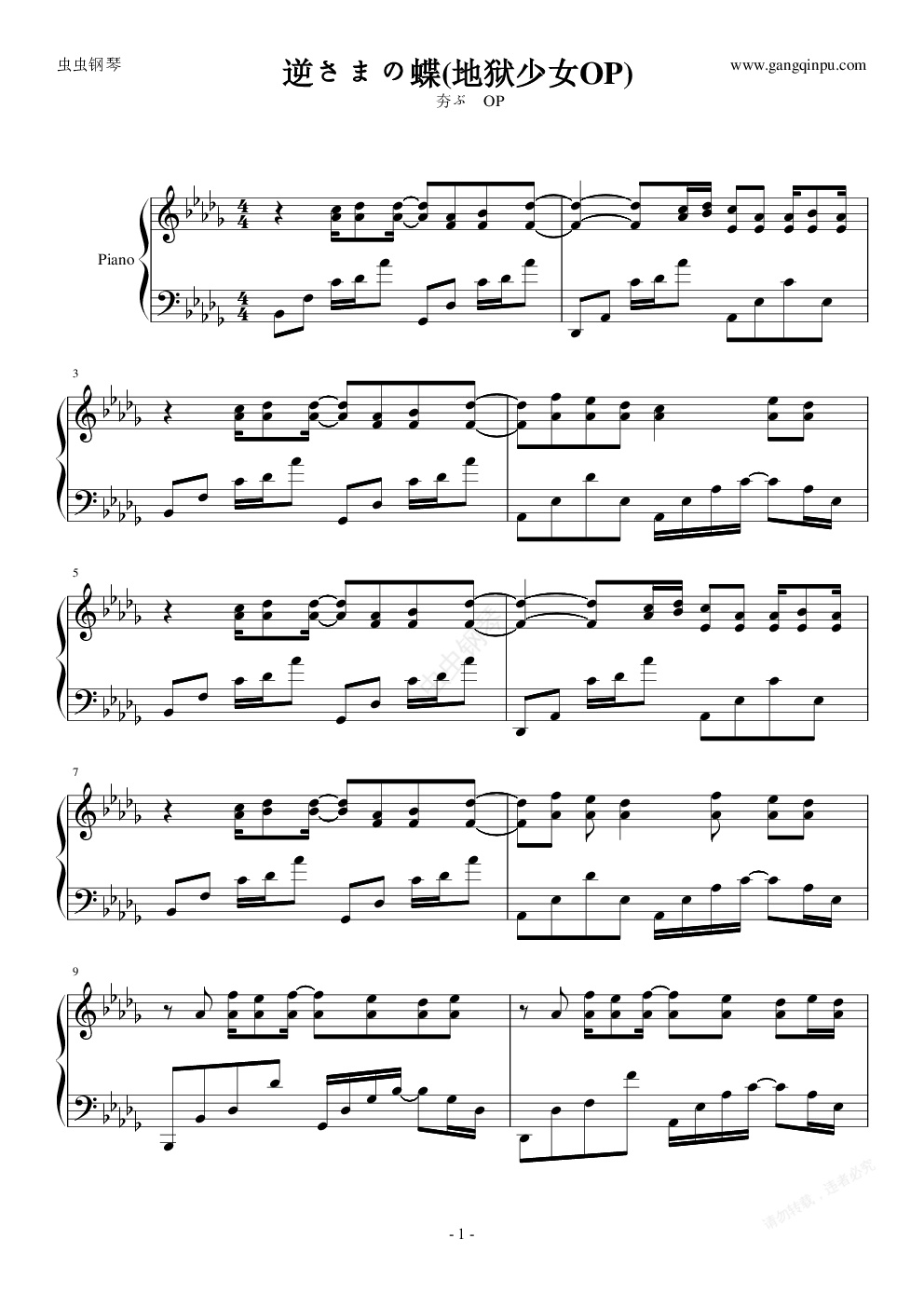 钢琴谱:逆さまの蝶(地狱少女OP)