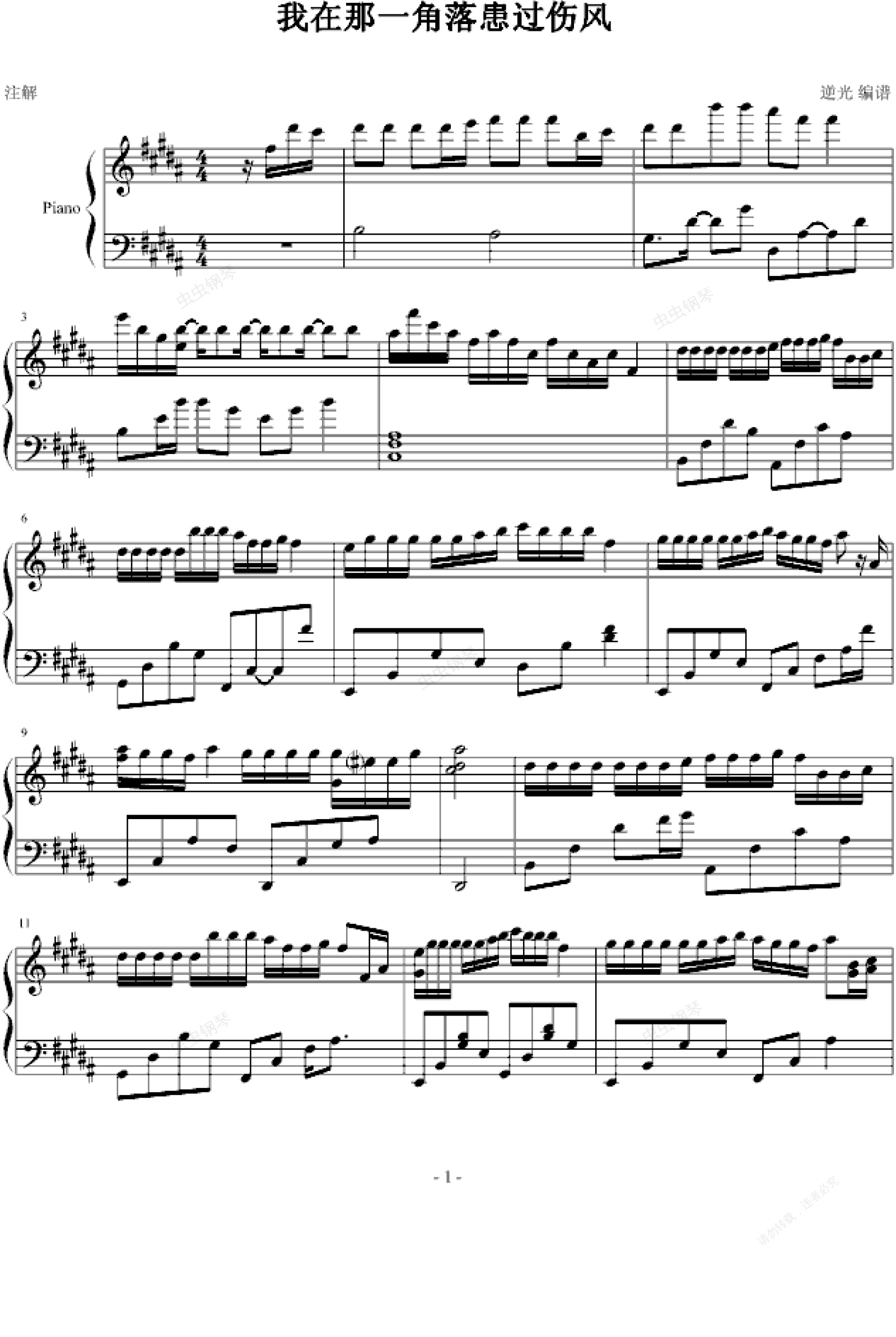 钢琴谱:我在那一角落患过伤风