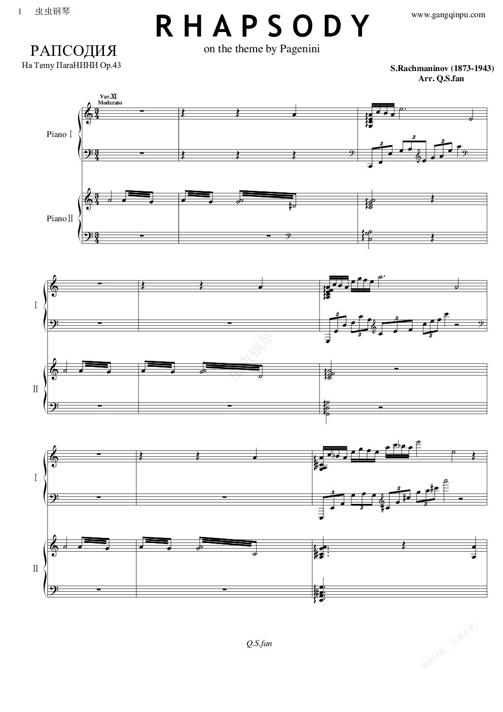 钢琴谱:帕格尼尼主题狂想曲(11~18变奏)