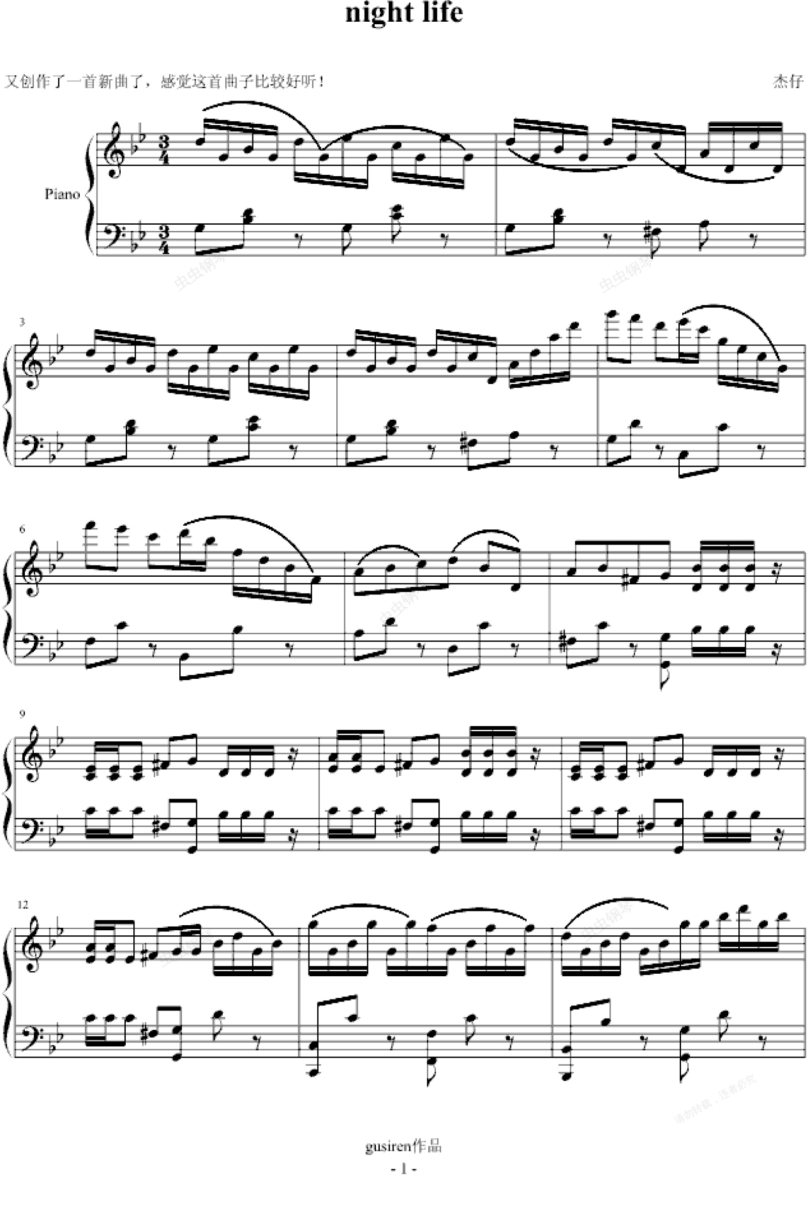 钢琴谱:night life