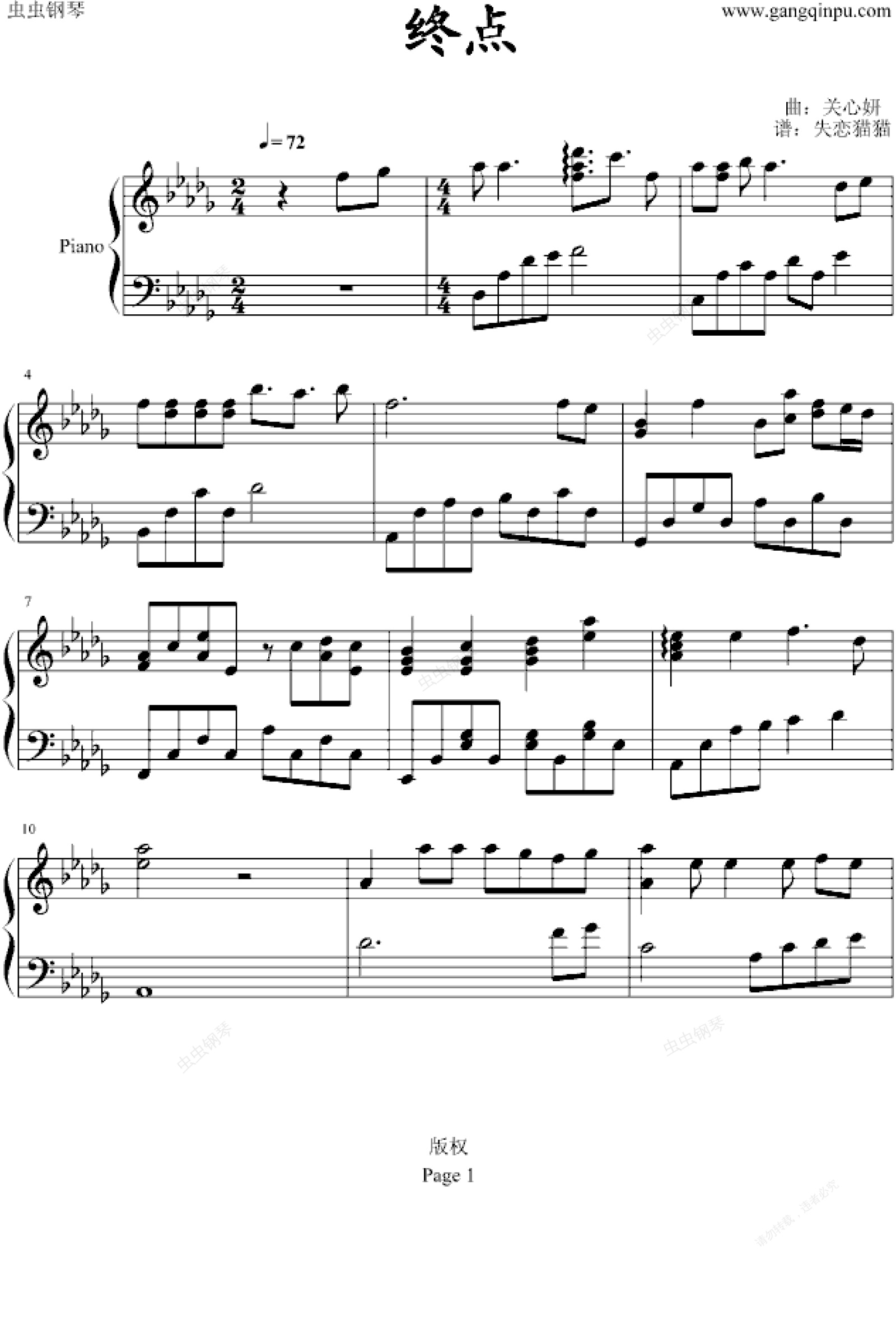 钢琴谱:终点