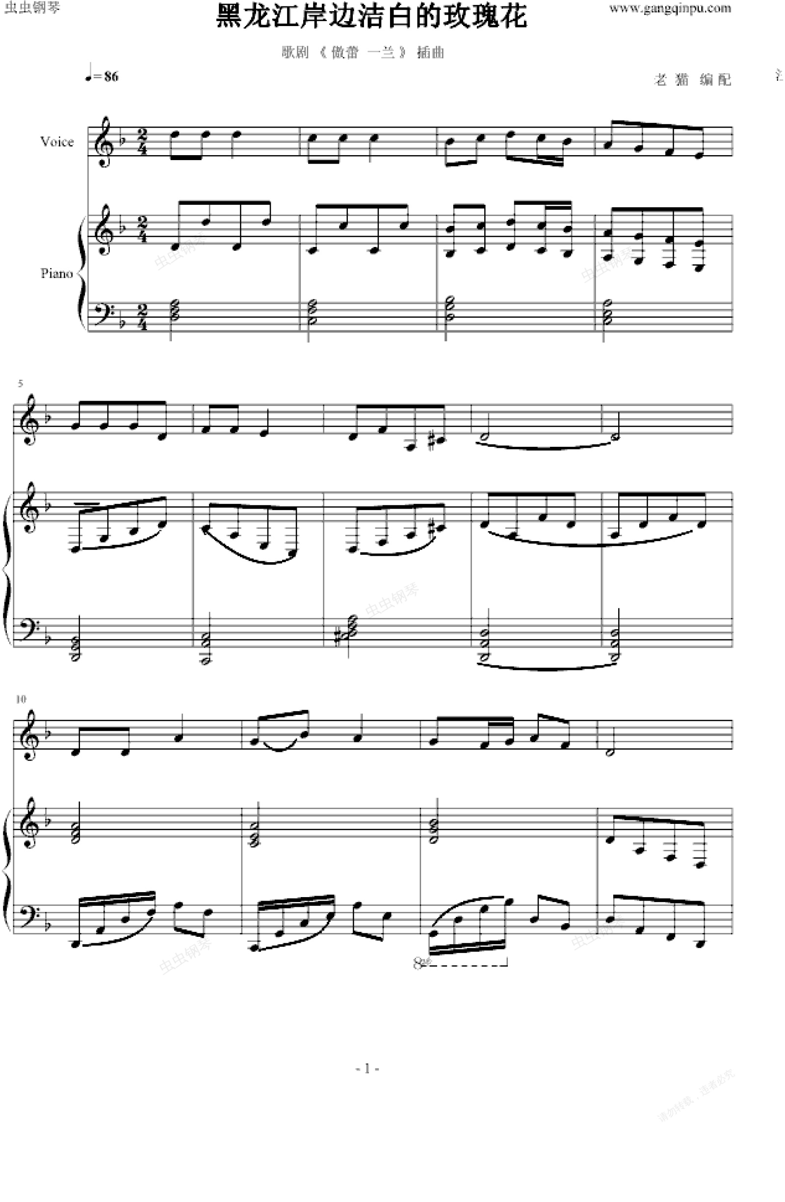 钢琴谱:黑龙江岸边洁白的玫瑰花
