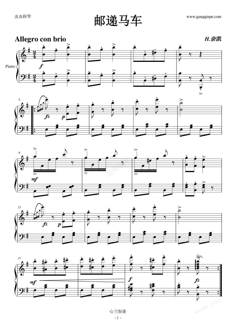 钢琴谱:邮递马车