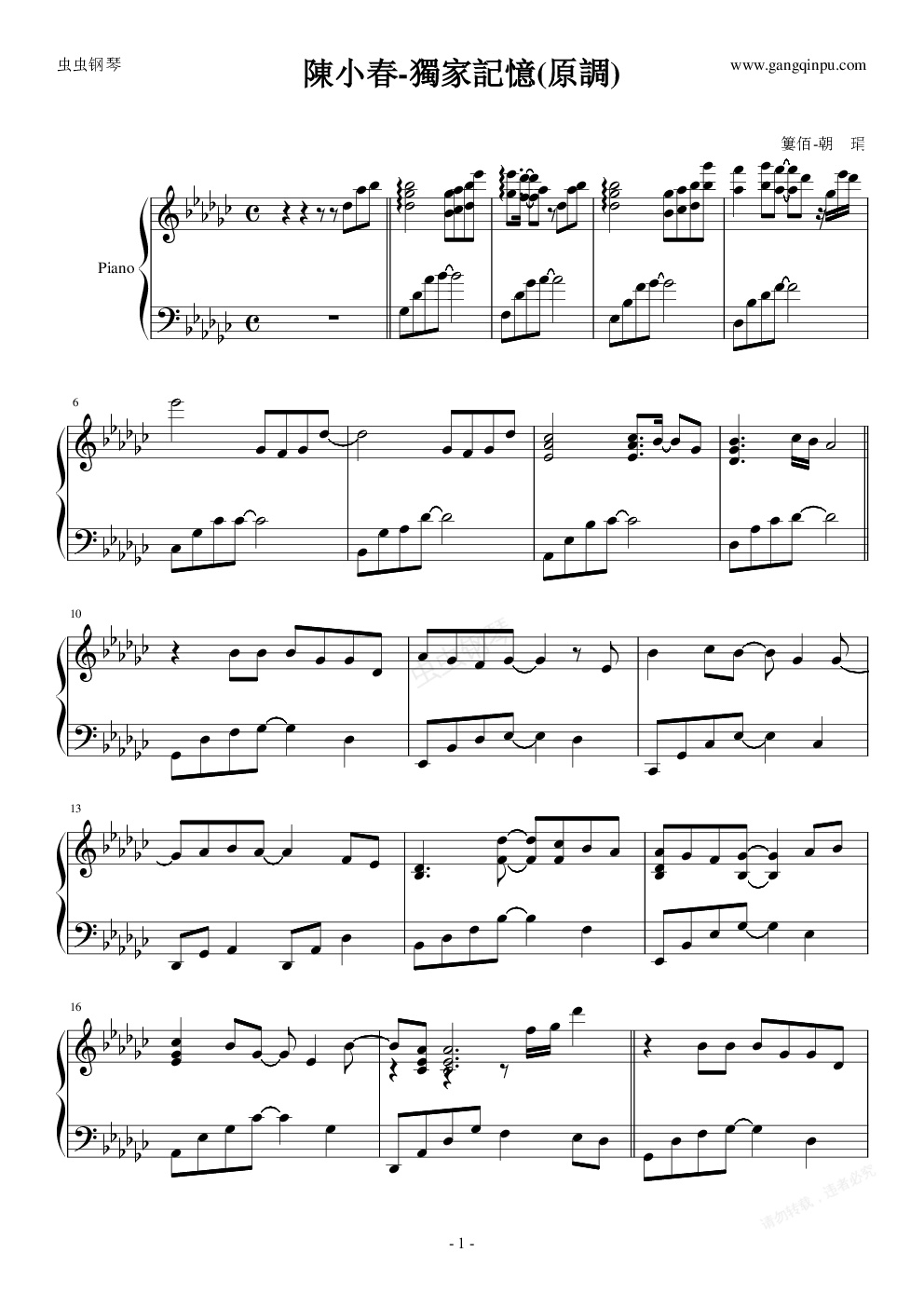 钢琴谱:独家记忆-(原調)