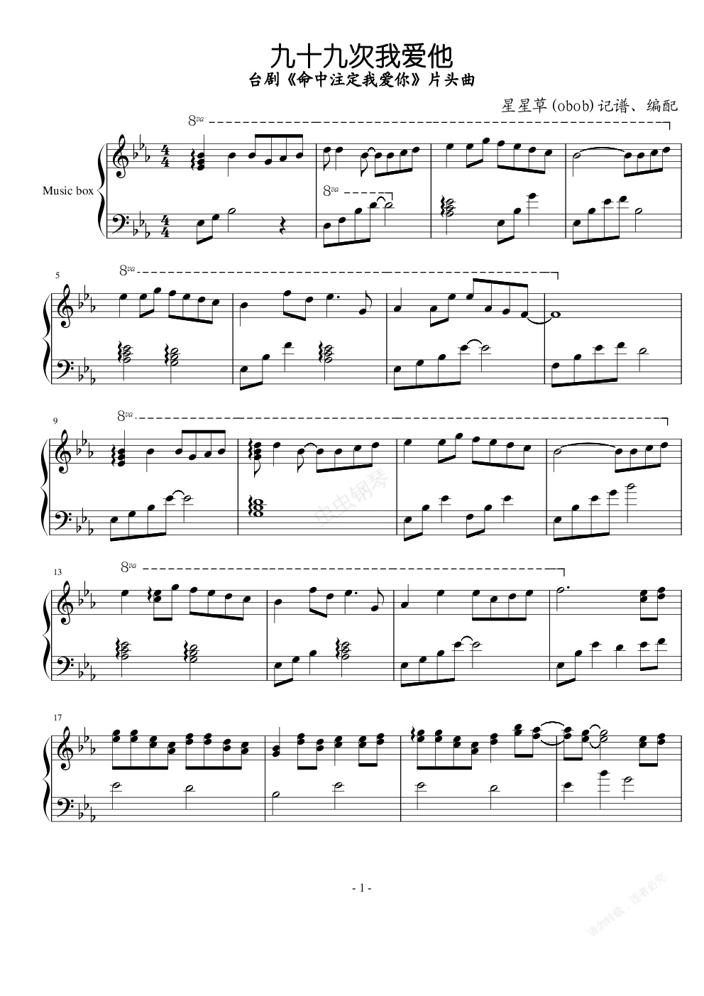 钢琴谱:九十九次我爱他-《命中注定我爱你》片头曲