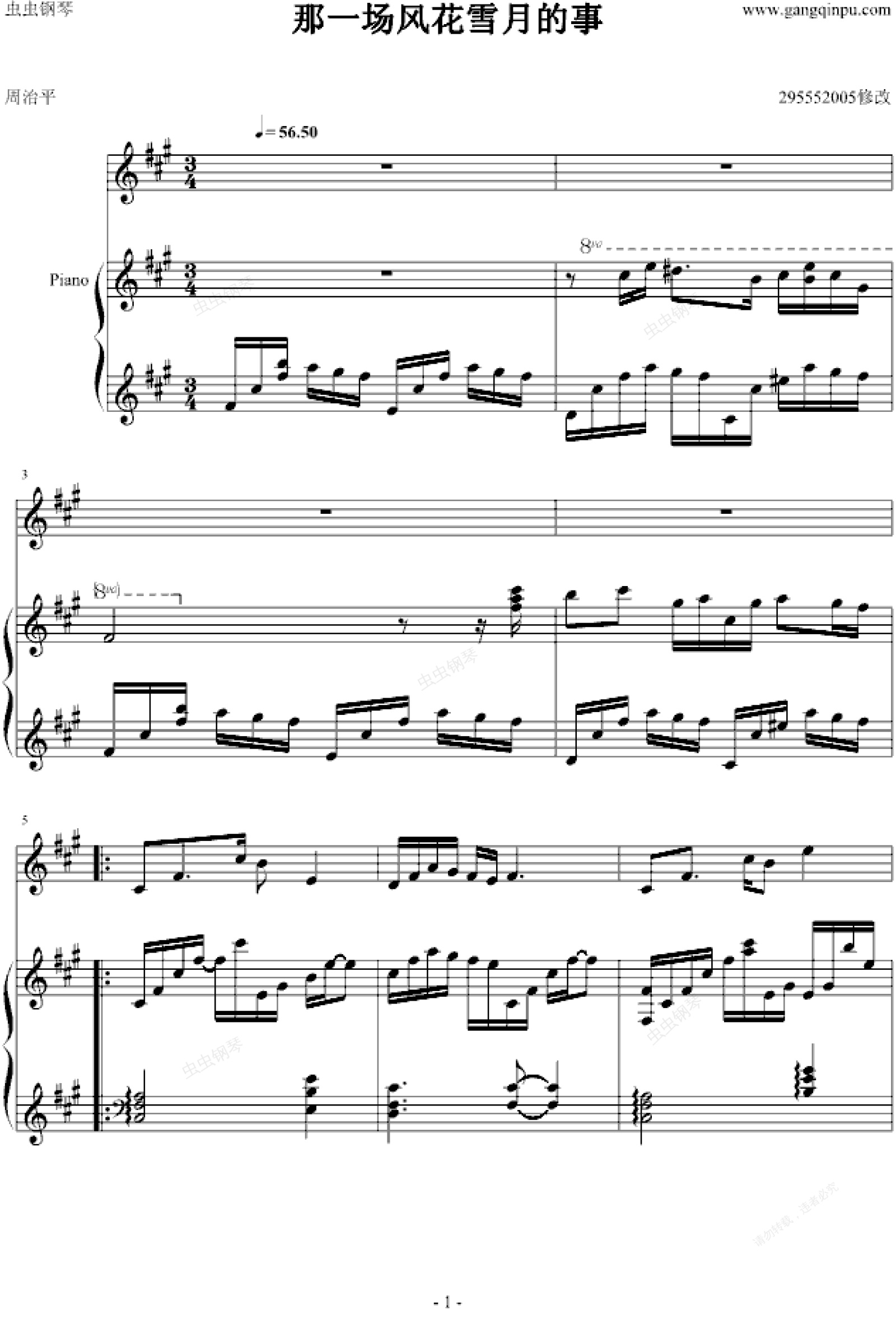 钢琴谱:那一场风花雪月的事(弹唱版)