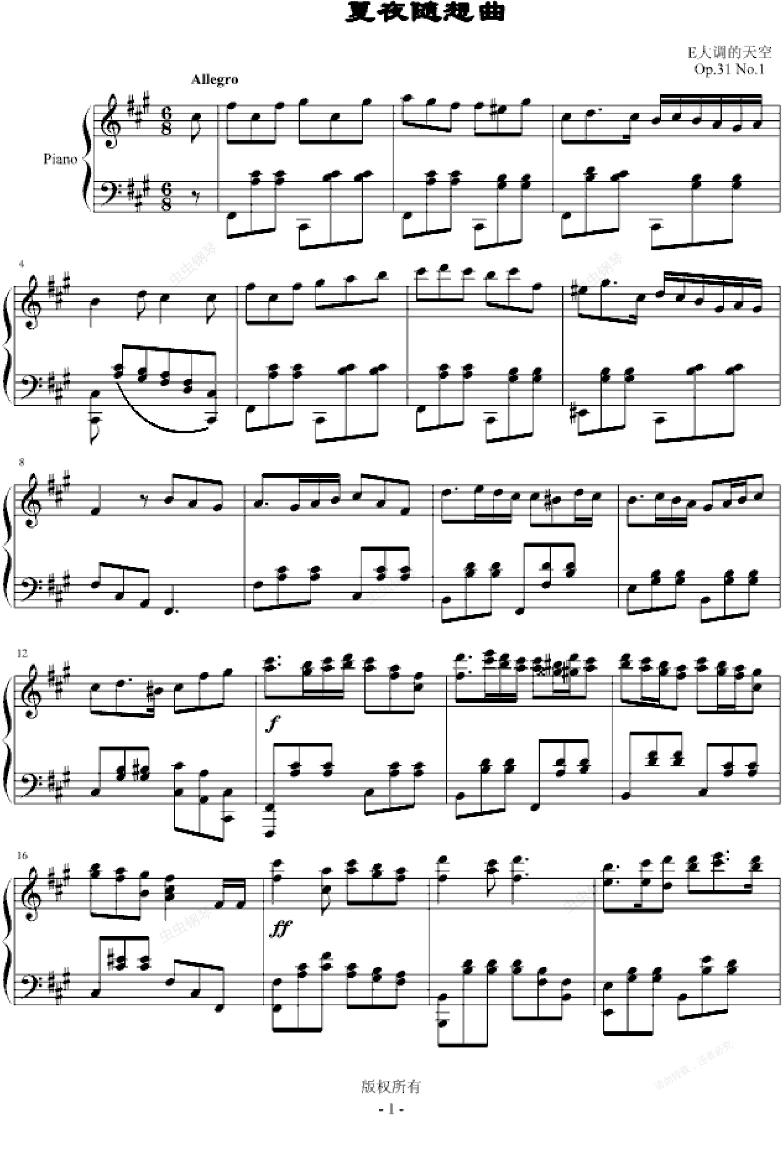 钢琴谱:夏夜随想曲