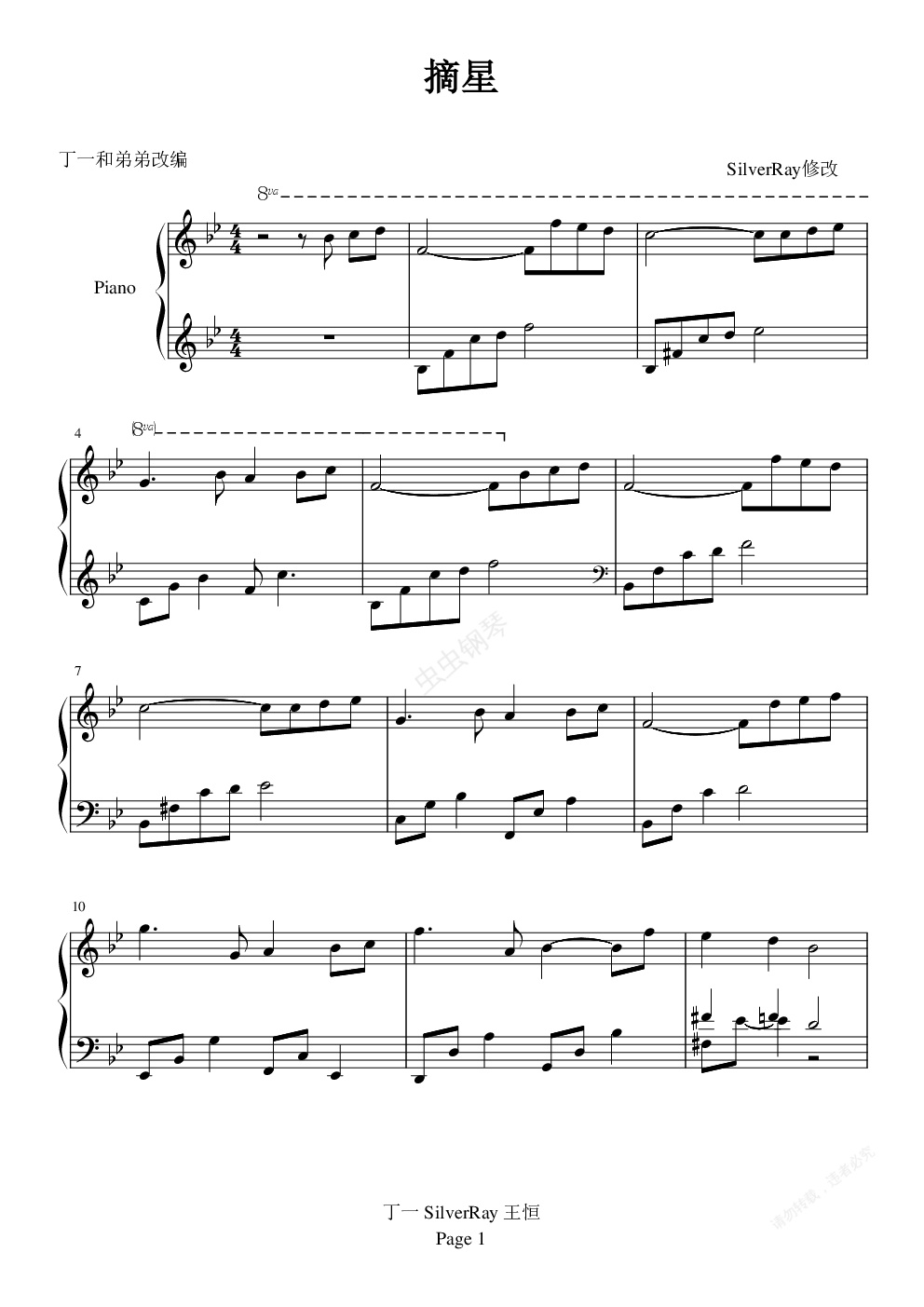 钢琴谱:摘星-(纯钢琴修改)