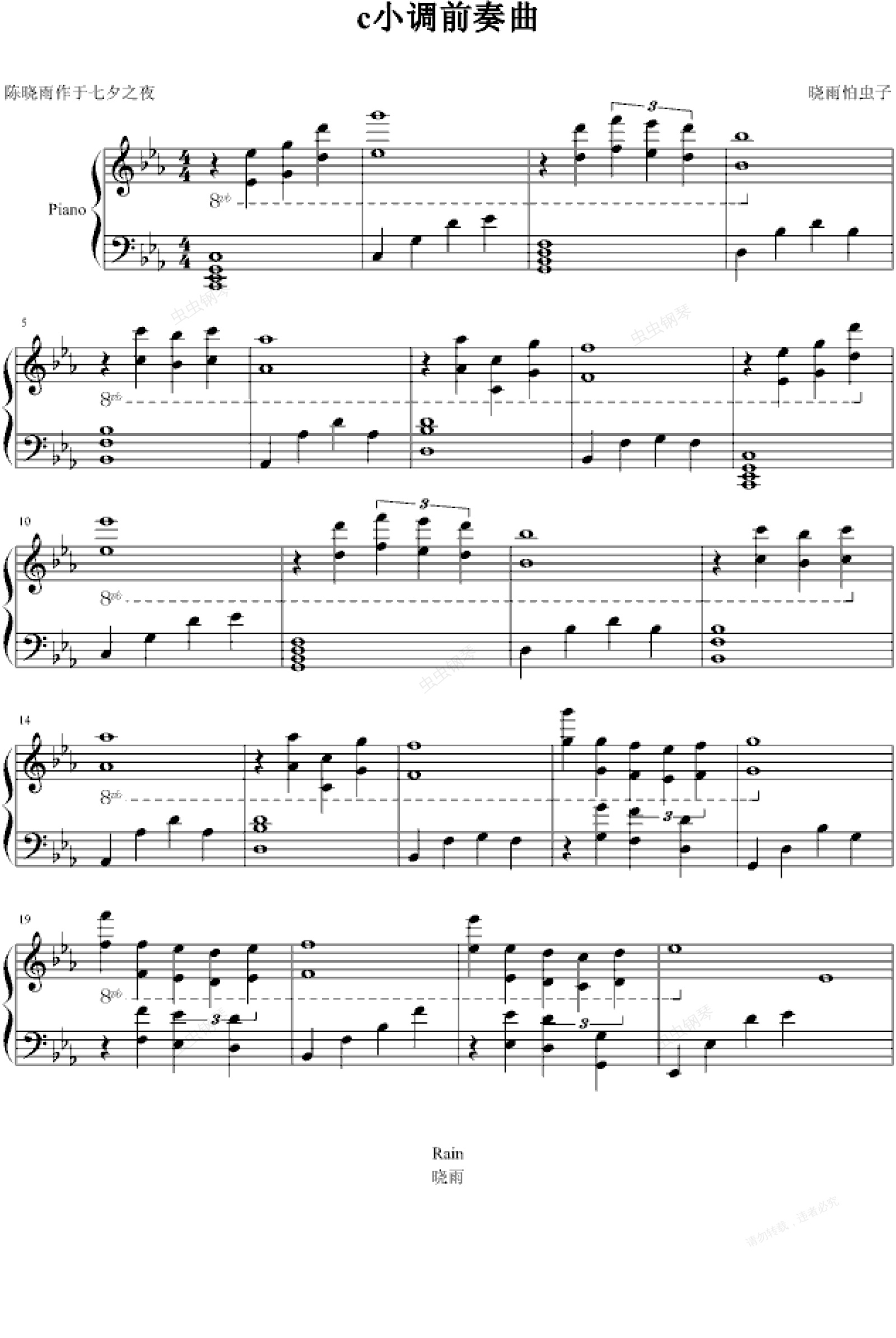 钢琴谱:c小调前奏曲