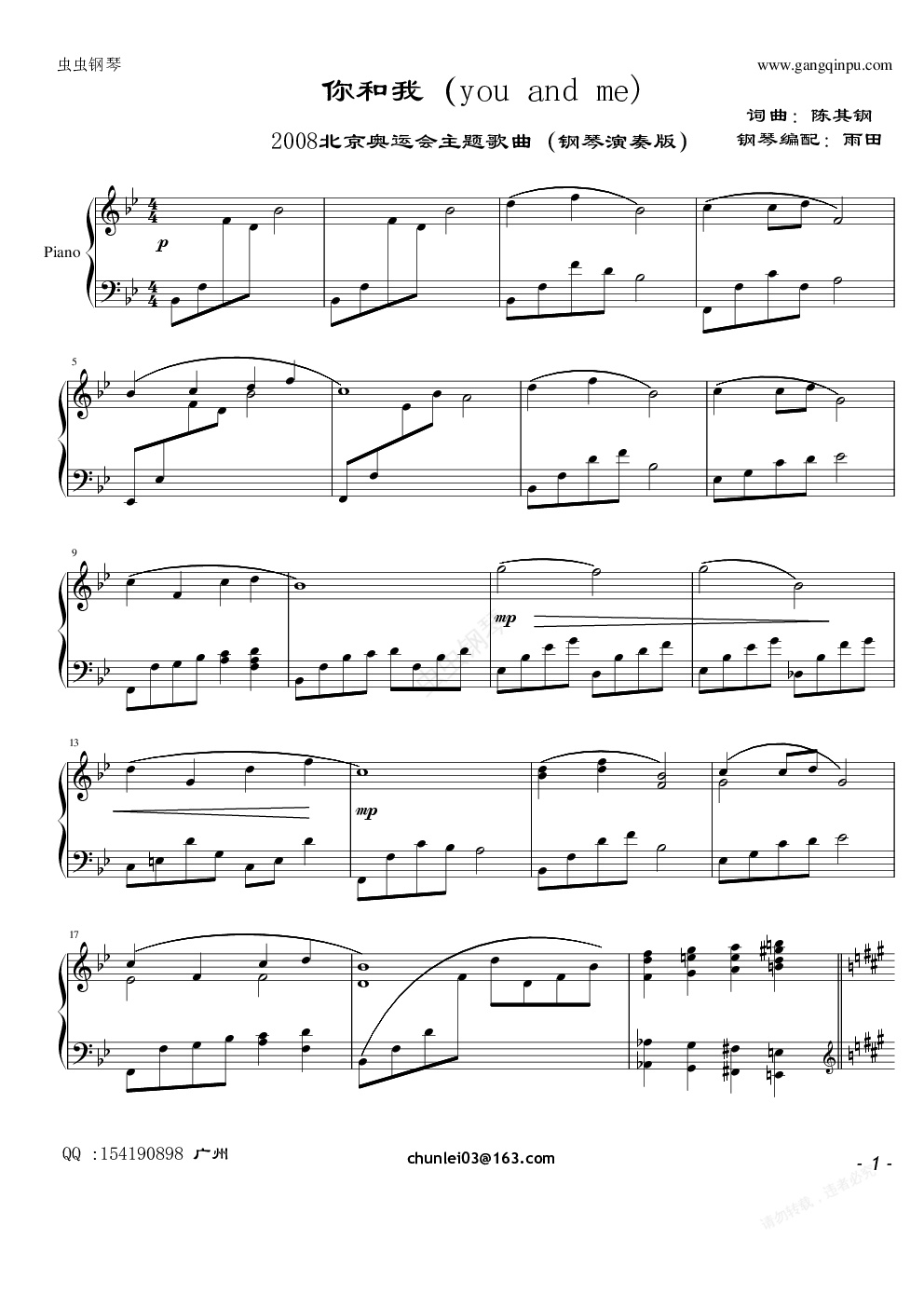 《我和你(you and me》完美钢琴演奏版-(雨田版)