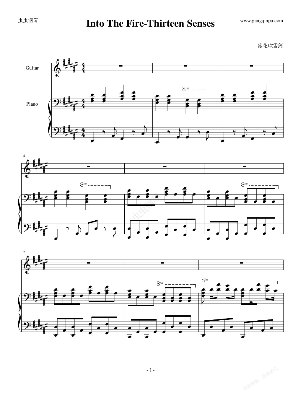 钢琴谱:Into The Fire-Thirteen Senses(伴奏)
