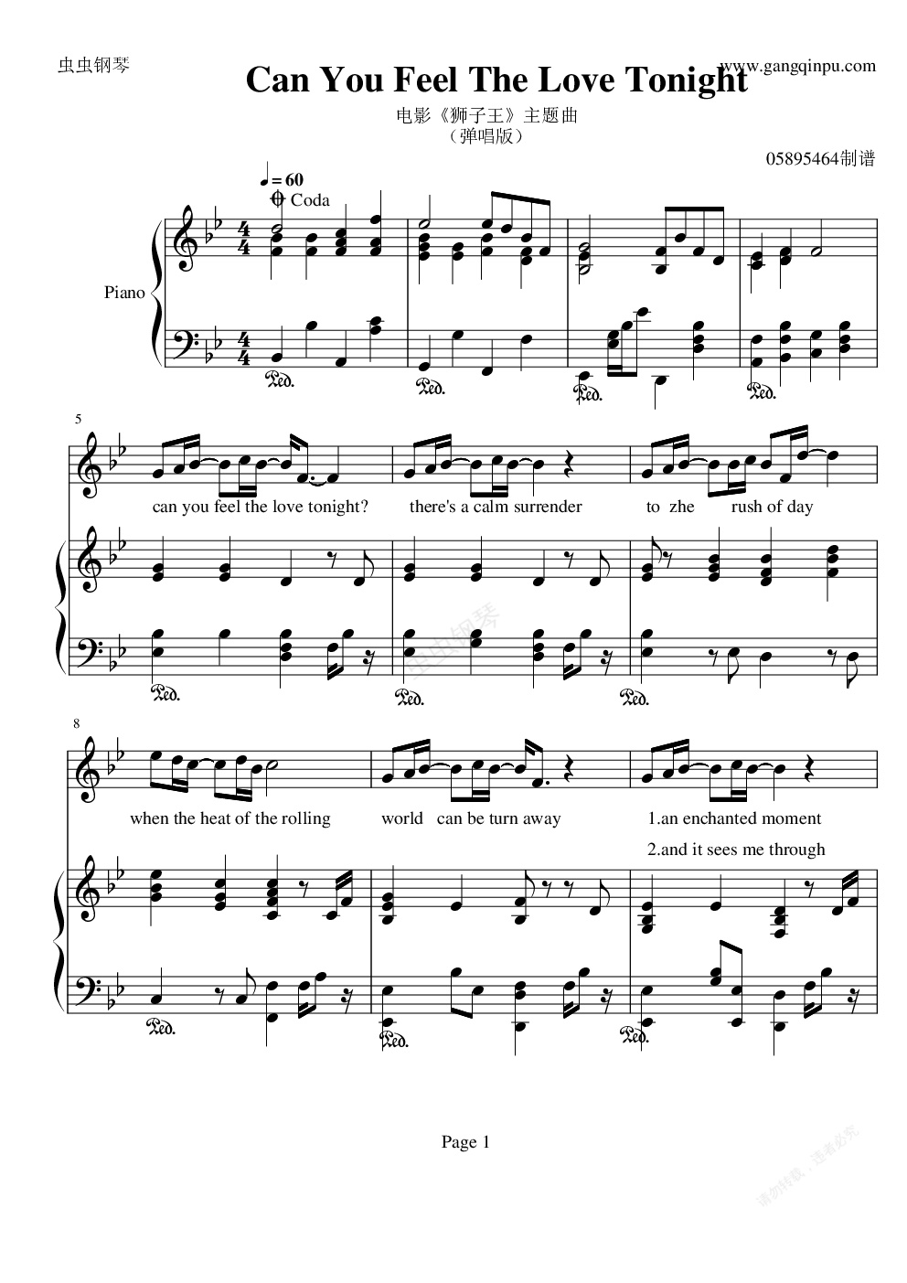 钢琴谱:狮子王主题曲
