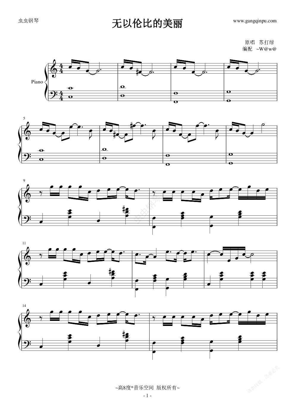 钢琴谱:无以伦比的美丽