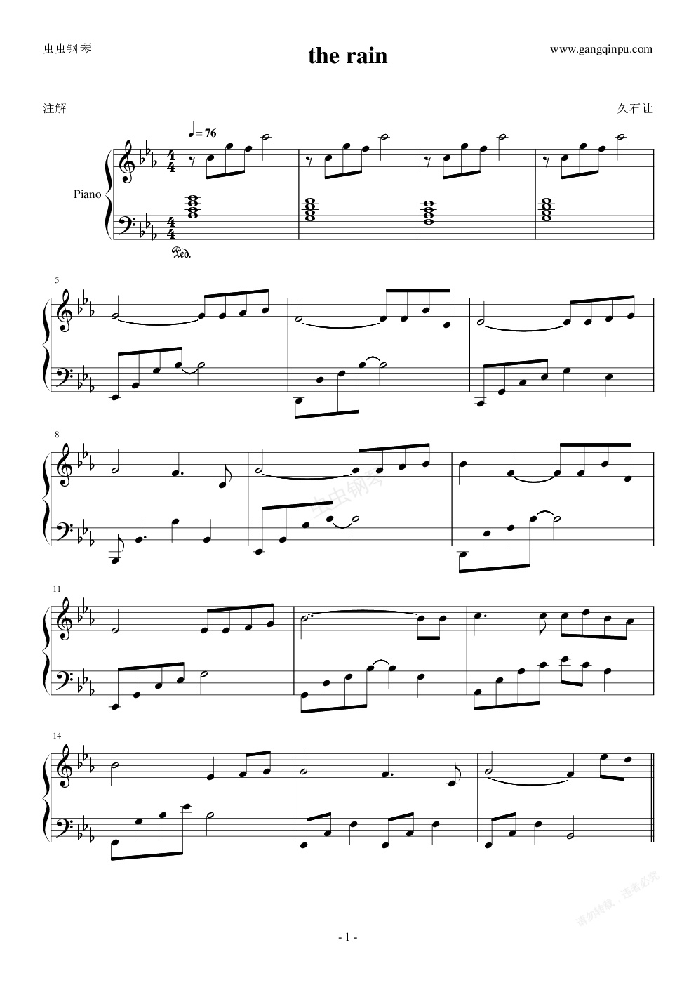钢琴谱:the rain (简单版)
