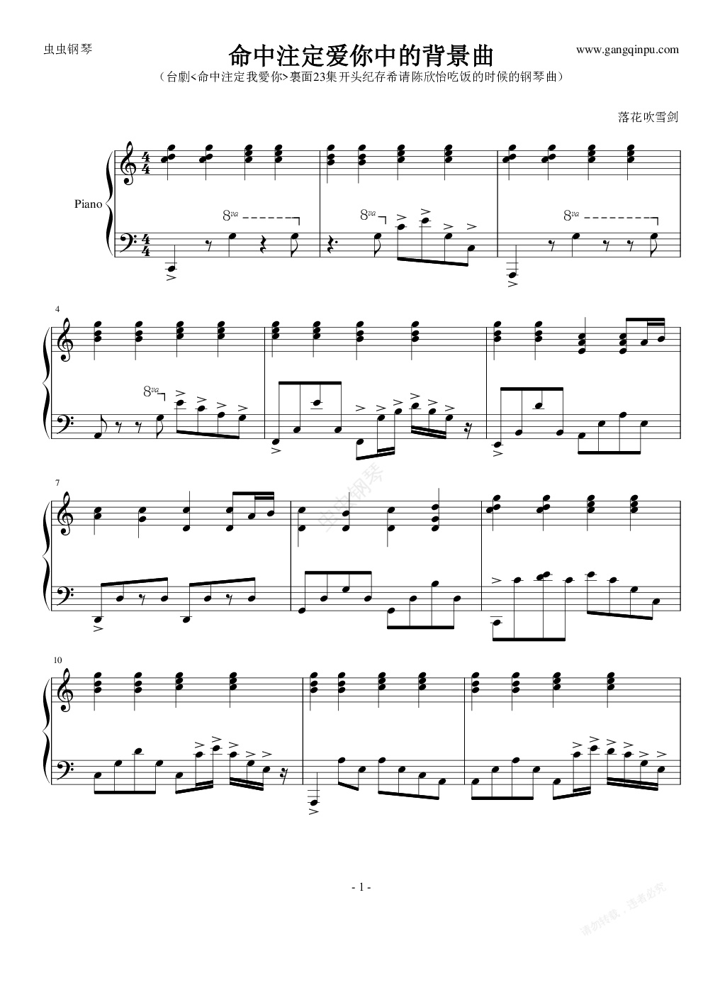 钢琴谱:《命中注定我愛你》23集鋼琴曲