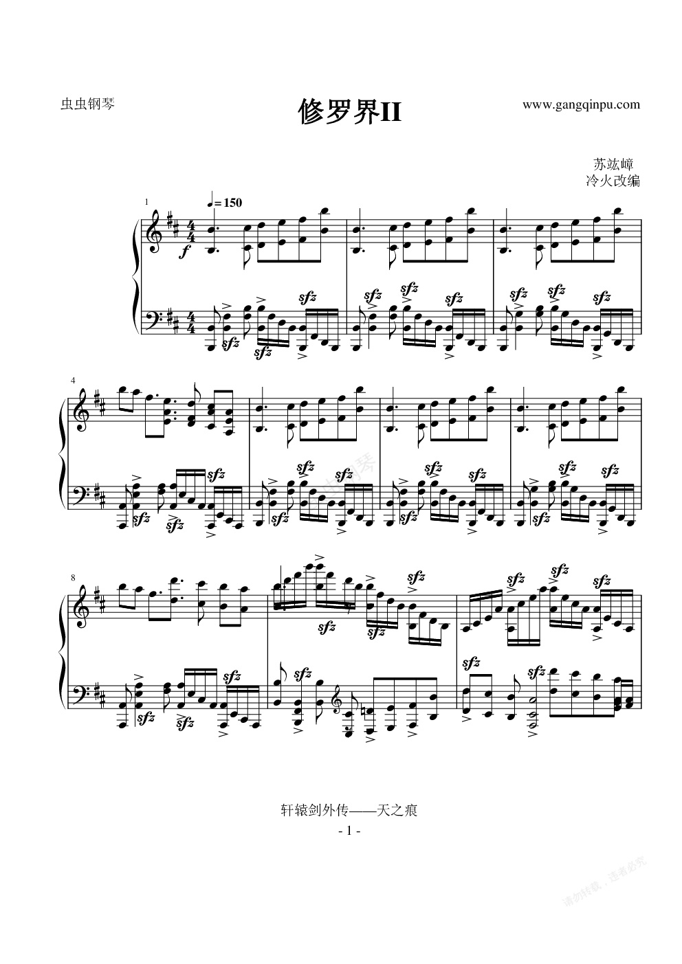钢琴谱:轩辕剑外传天之痕战斗曲——修罗界II