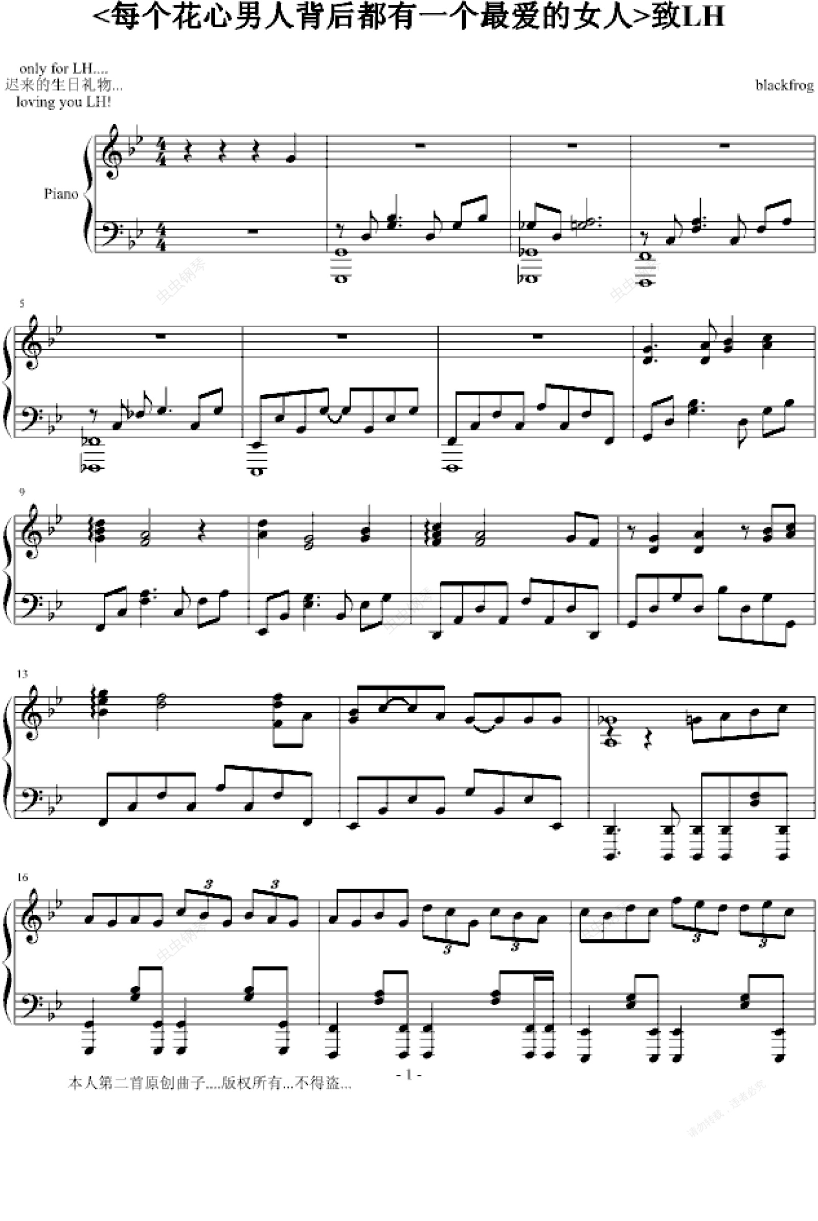 PS:管理员叔叔就要看这里了...之前我原创第一首发了N次都没出现...这回一定要出现啊..这个江湖救急啊...越早登上去越好..还有原谱试听和原声试听是一样的,我两边都传了个一模一样的,目的就是说...管理员一定要放出我制作的试听...虽然我的是wma格式...但是真的...江湖救急...管理员叔叔把它转成MP3吧...谢谢了..这一段出来的时候删掉也可以了...因为实在比较废话....