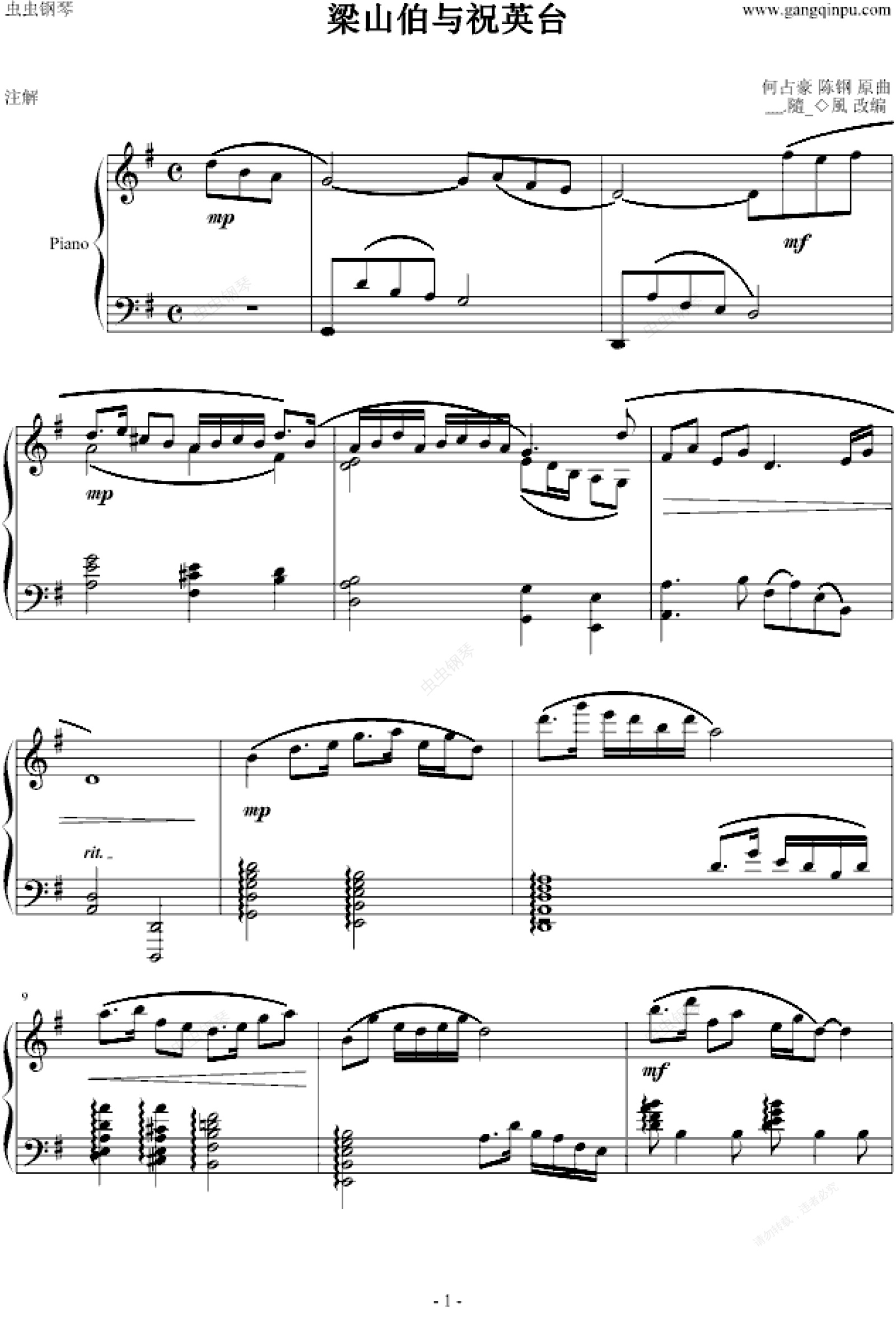 钢琴谱:梁山伯与祝英台