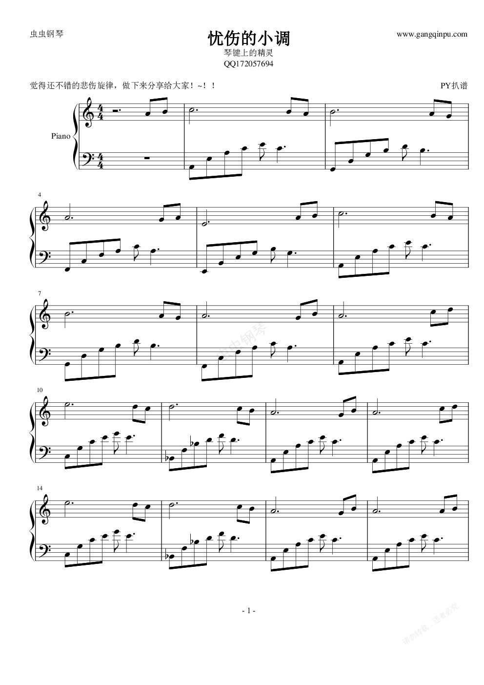 钢琴谱:忧伤的小调