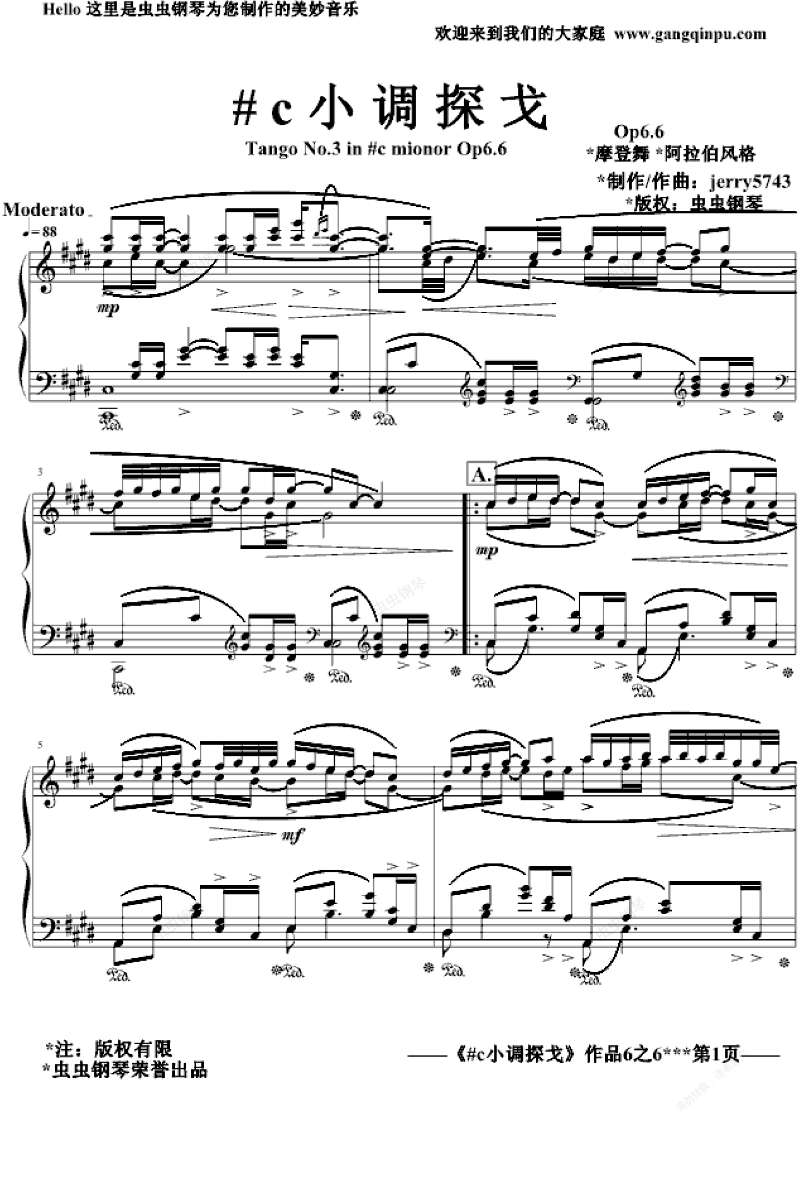 钢琴谱:#c小调探戈Op6.6(阿拉伯风)