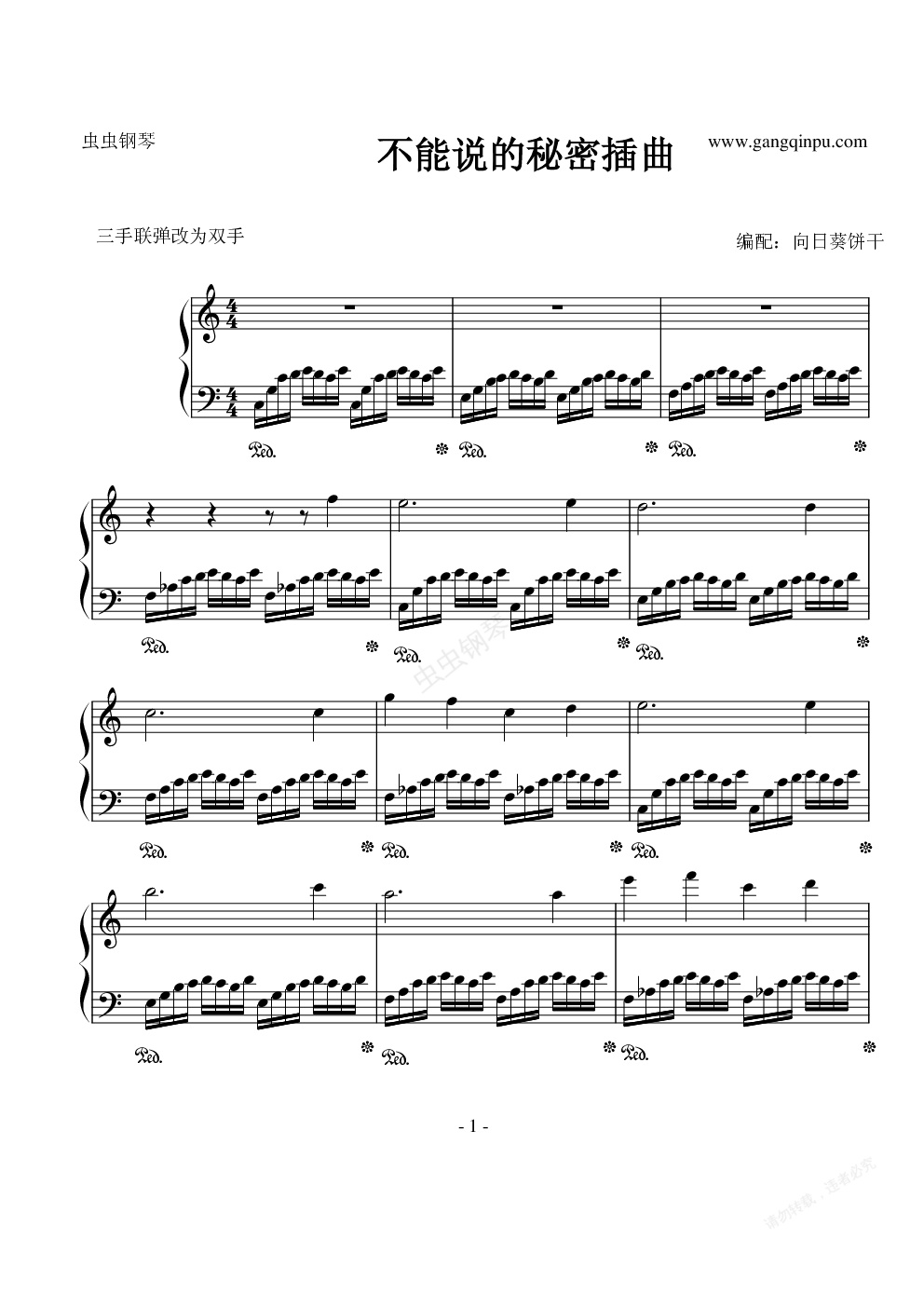 钢琴谱:不能说的秘密插曲