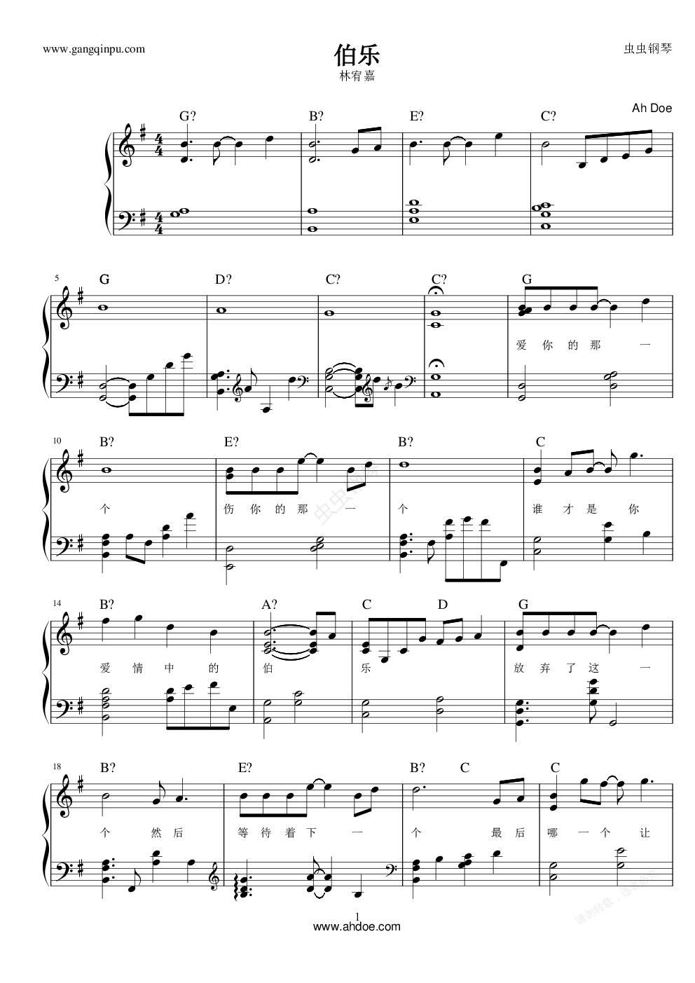 钢琴谱:伯乐