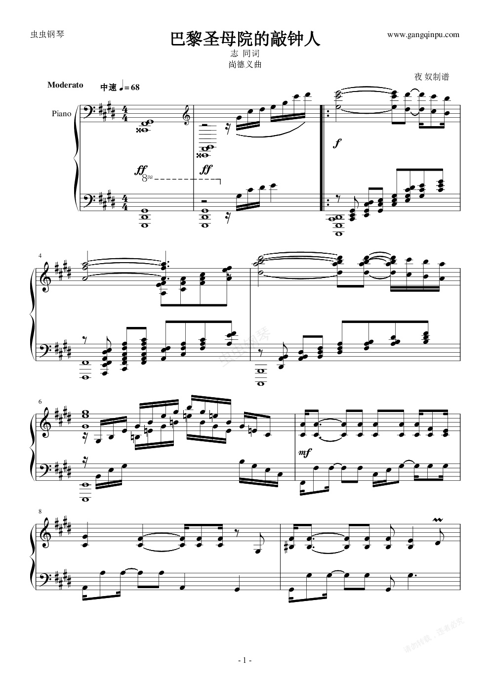 钢琴谱:巴黎圣母院的敲钟人
