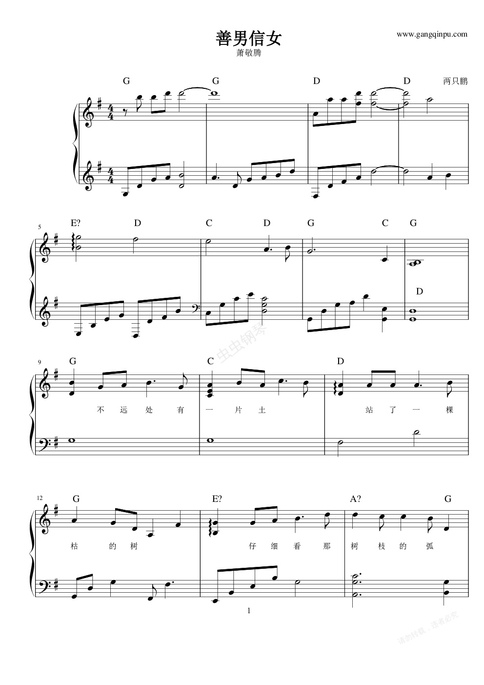 歌名:善男信女 歌手:萧敬腾 music~ 不远处有一片土 站了一棵枯的树 仔细看那树枝的蝗像在哭 枯树前杂沓脚步 收集安心的孤独 为什黱眼前荒芜 是天下有情人的归宿 那片山谷入口处清楚刻著伤心人的墓 那片浓雾隔绝了其实可以忘了爱的省悟 别哭 那片乐土是不是至少能让眼泪都停住 祝福什黱都不再记住 祝福下一次总会幸福 祝福爱情的信徒 那善男信女别太辛苦 music~ 枯树前杂沓脚步 刻著心碎的控诉 读完别人的感触 却又义无反顾的投入 那片山谷入口处清楚刻著伤心人的墓 那片浓雾隔绝了其实可以忘了爱的省悟 别哭 那片乐土是不是至少能让眼泪都停住 祝福什黱都不再记住 祝福下一次总会幸福 祝福爱情的信徒 那善男信女都别再继续守护 谁的衣服还穿著只为遮掩苍白的皮肤 谁的脚步有几个真的可以远离爱远离糊涂 别哭谁的省悟~~啊~从此入土 祝福什黱都不再记住 祝福很快会找到幸福 祝福爱情的信徒 那善男信女不再辛苦 the end~