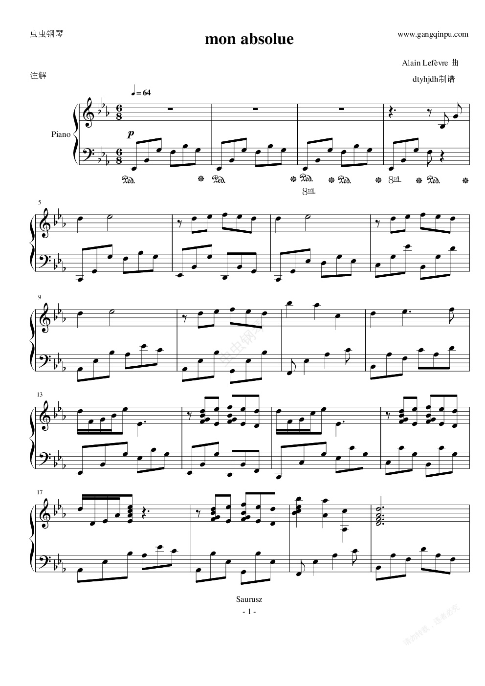 钢琴谱:mon absolue