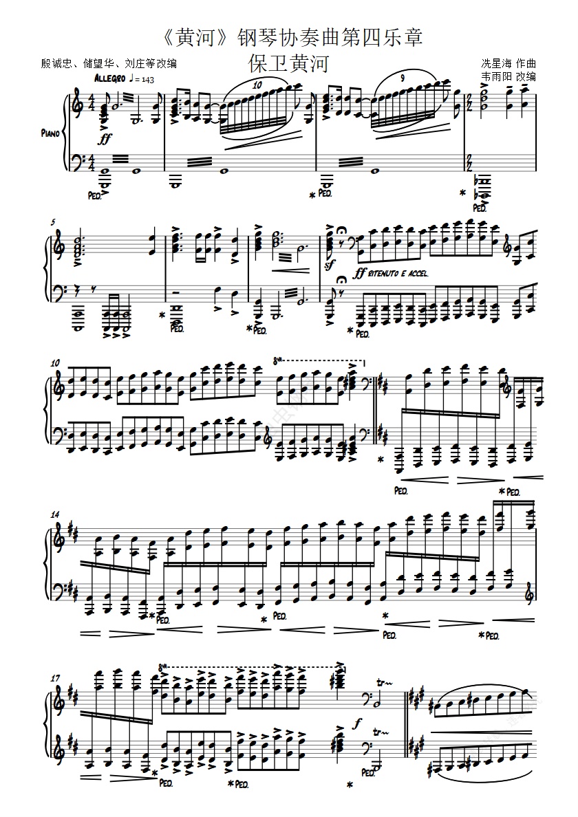 钢琴谱:保卫黄河钢琴独奏版(初稿)
