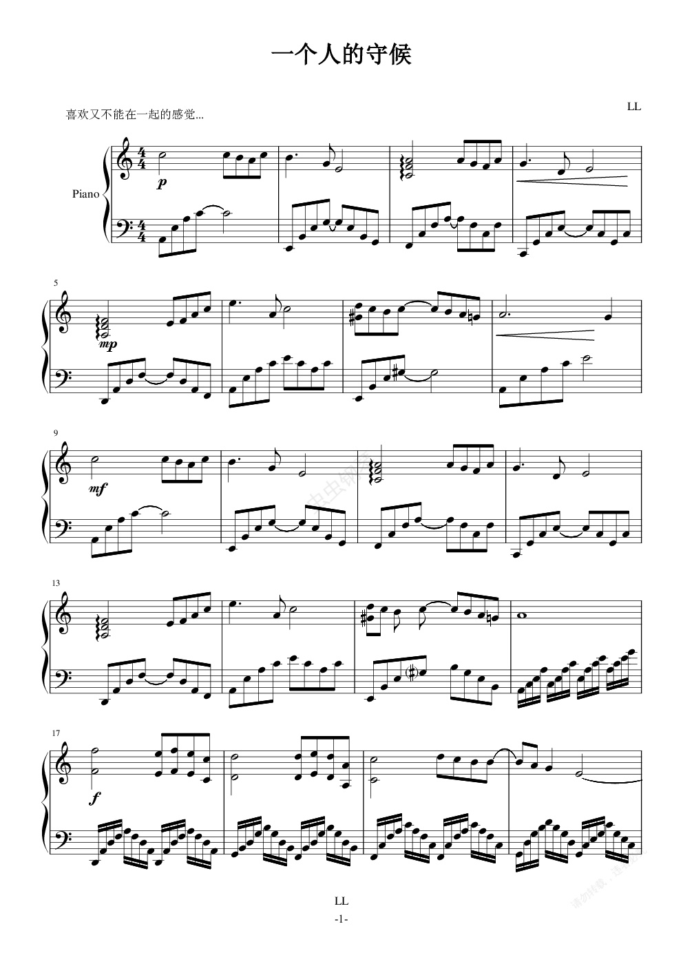 钢琴谱:一个人的守候