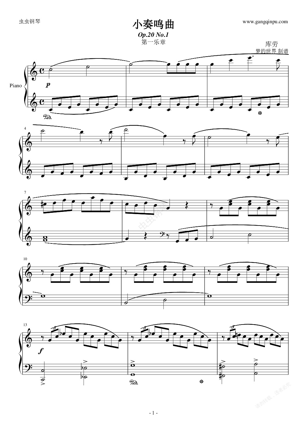 钢琴谱:小奏鸣曲(Op20.No.1)第一乐章