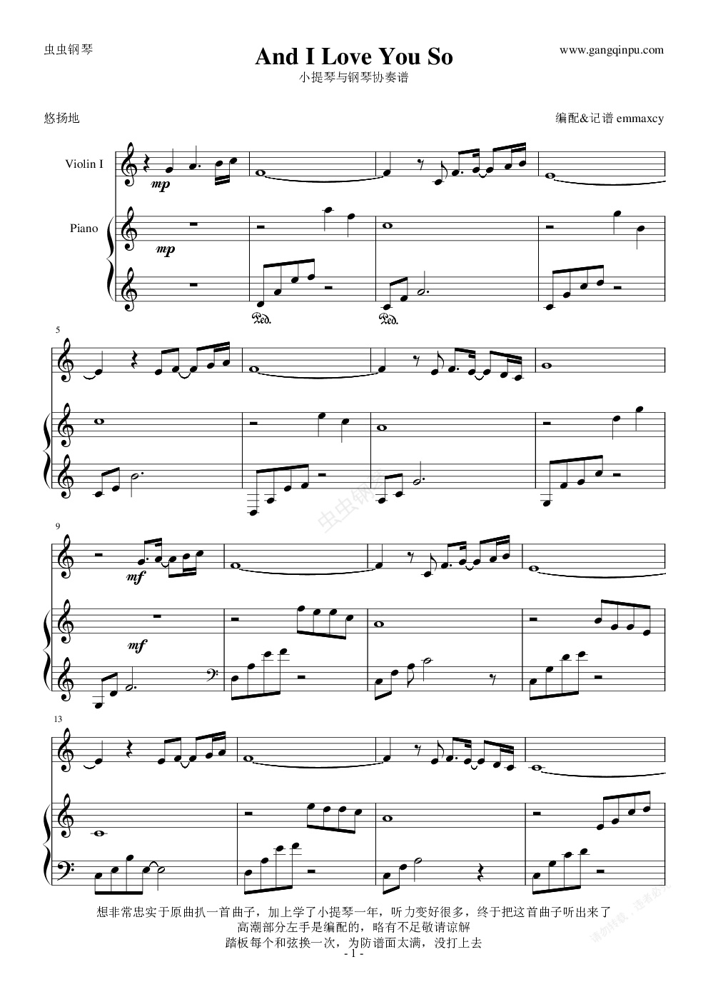 钢琴谱:And I Love You So-小提琴和钢琴协奏总谱