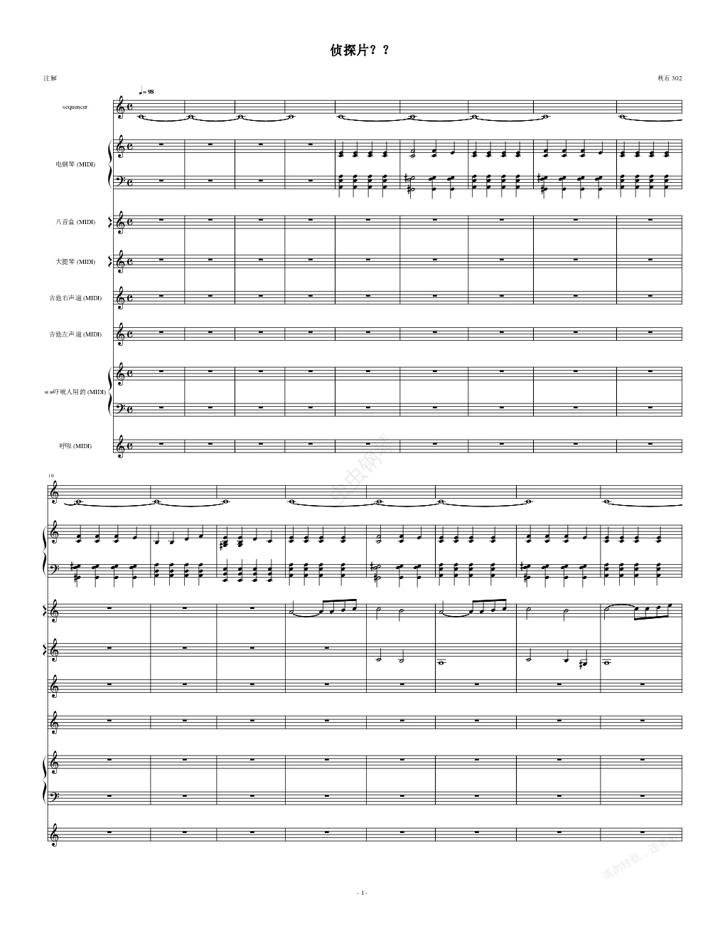 钢琴谱:侦探片???