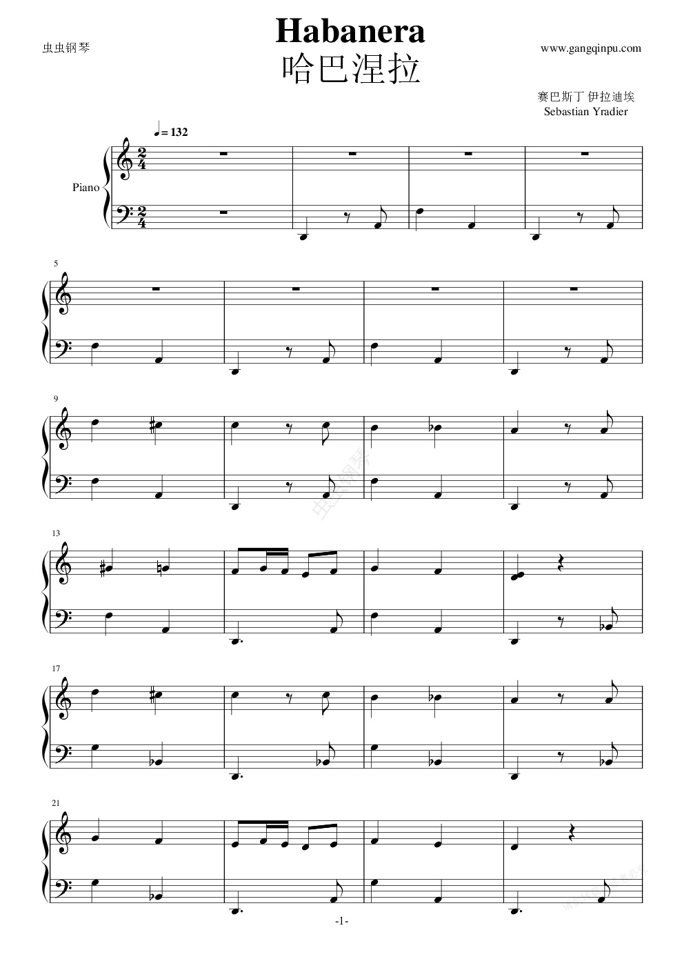 钢琴谱:哈巴涅拉Habanera(简易版)
