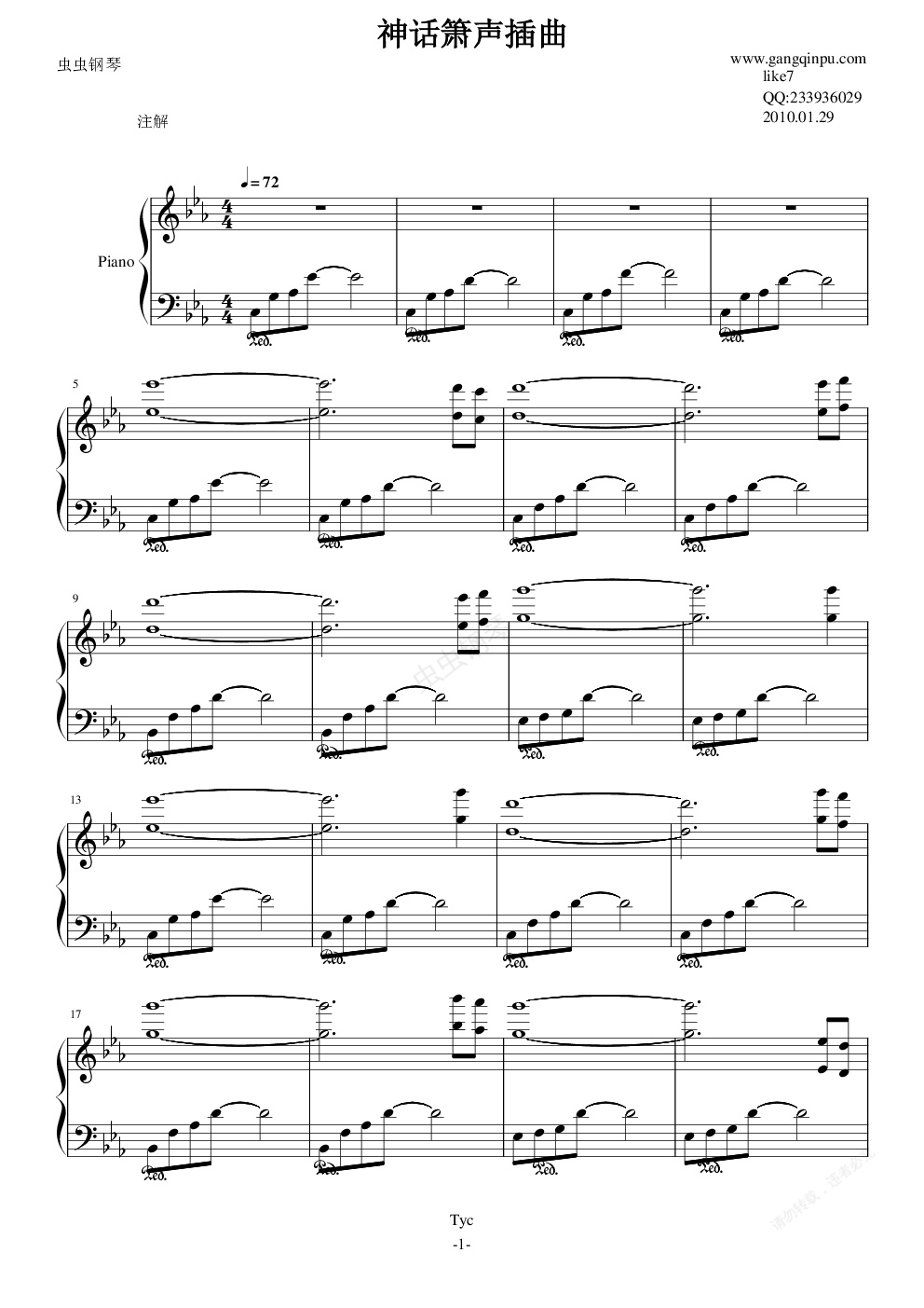 钢琴谱:神话箫声插曲(钢琴独奏版)