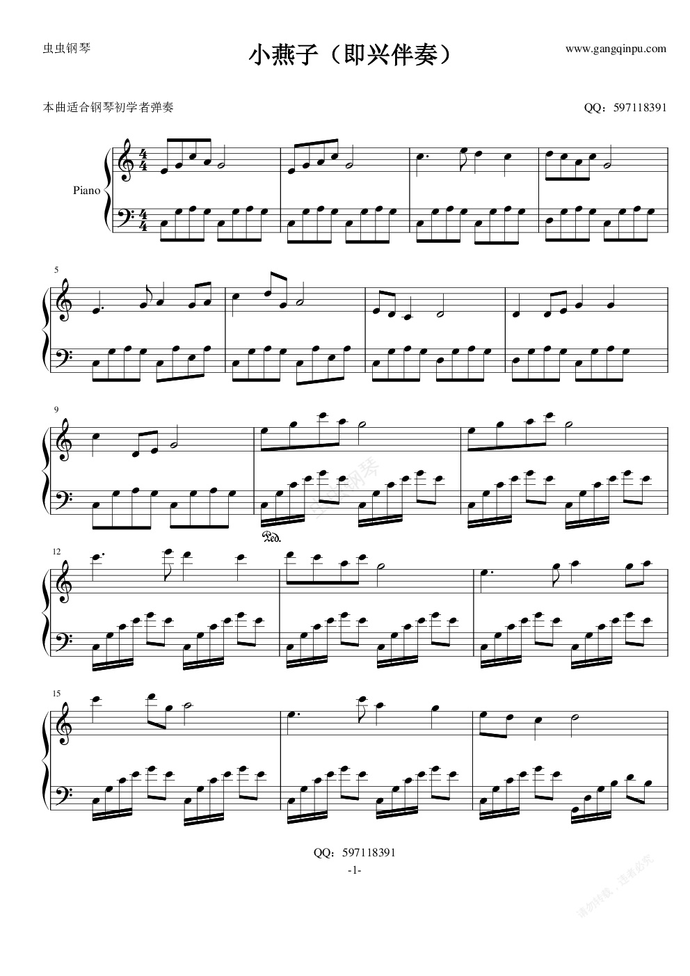 钢琴谱:小燕子(钢琴即兴伴奏)