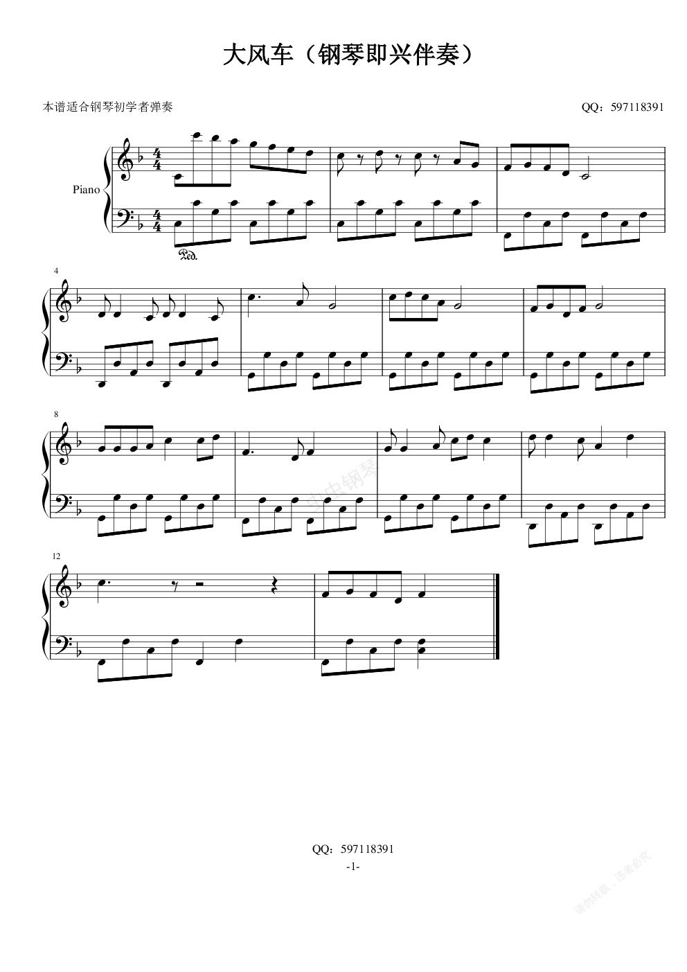 钢琴谱:大风车(钢琴即兴伴奏)