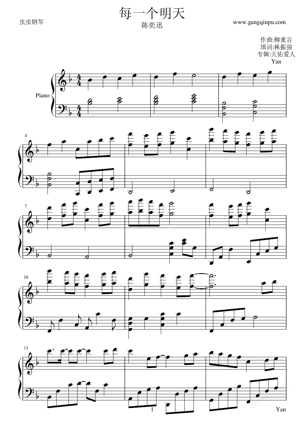 钢琴谱:每一个明天