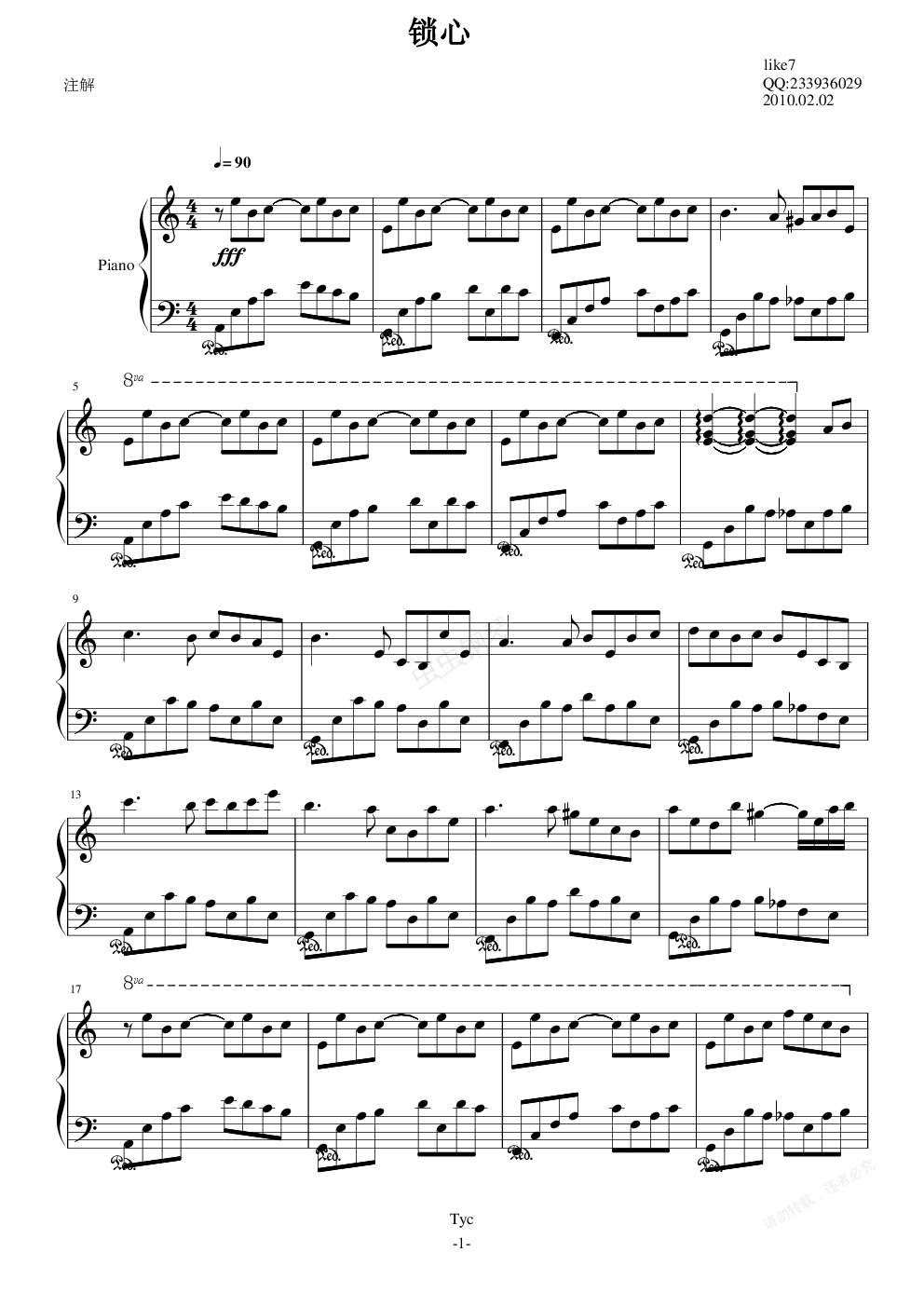 钢琴谱:锁心