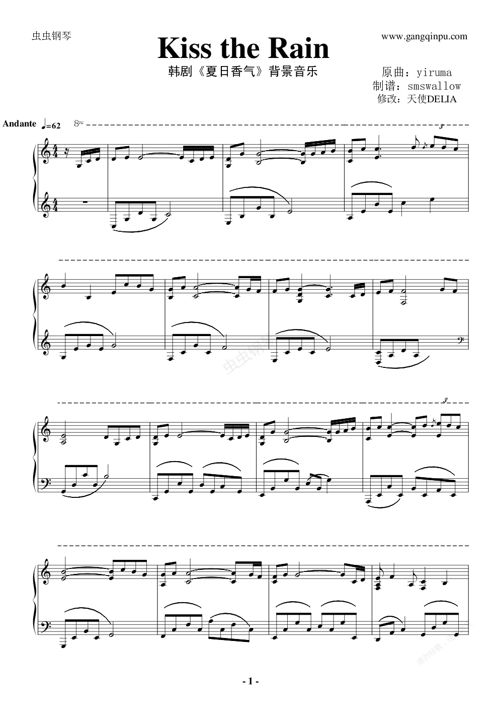 钢琴谱:Kiss the rain雨的印记(C调版)