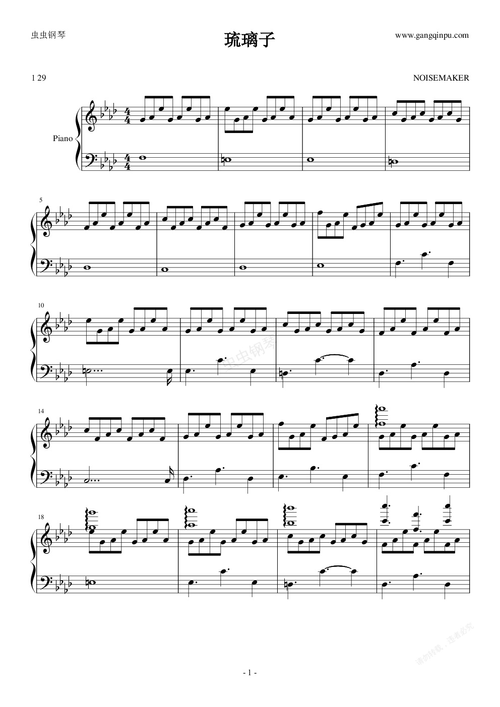 钢琴谱:琉璃子