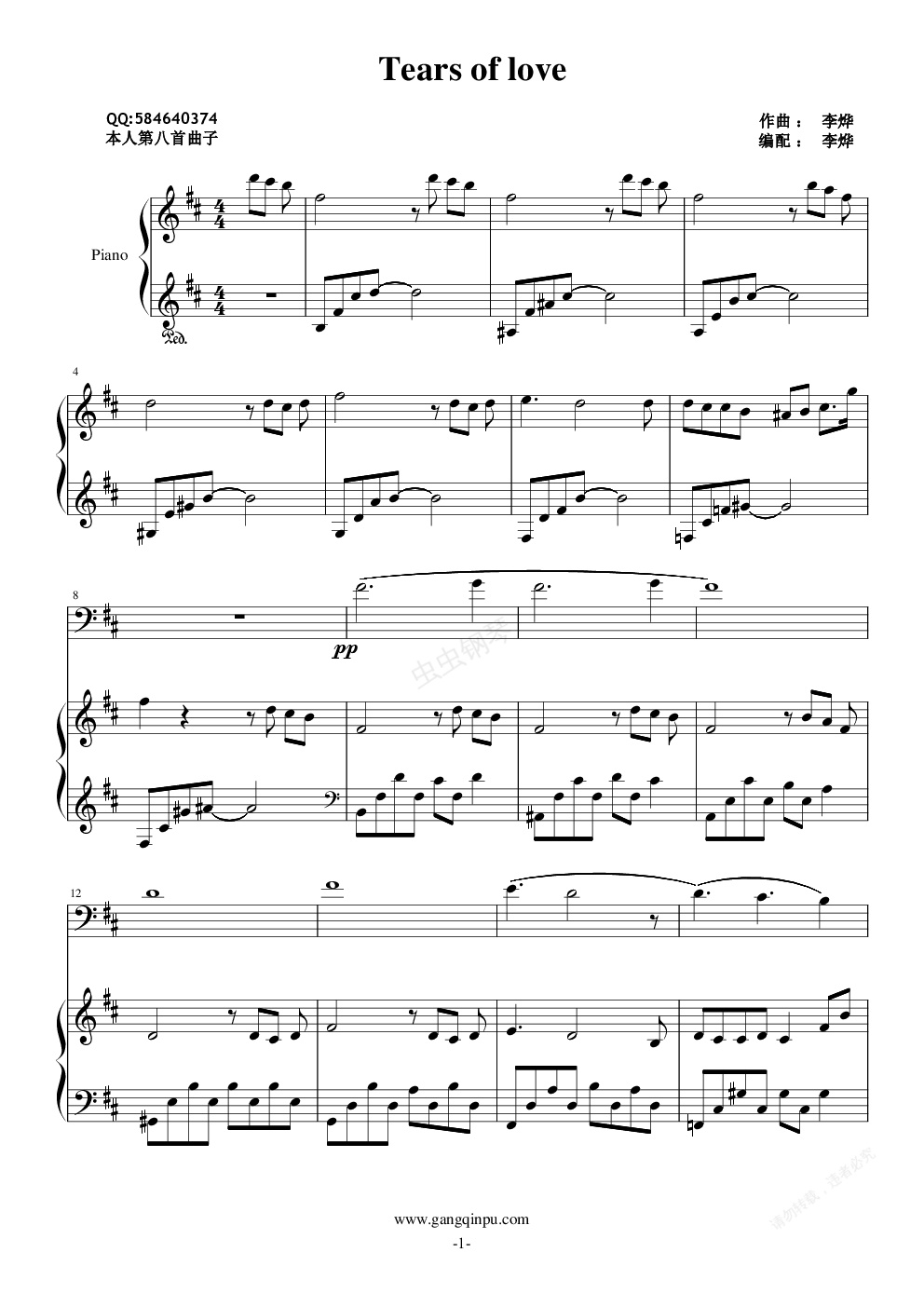 钢琴谱:Tears of love