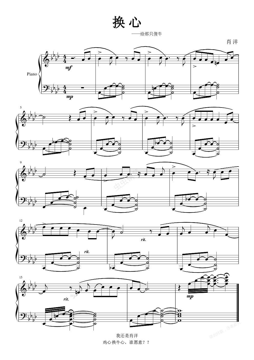 钢琴谱:换心