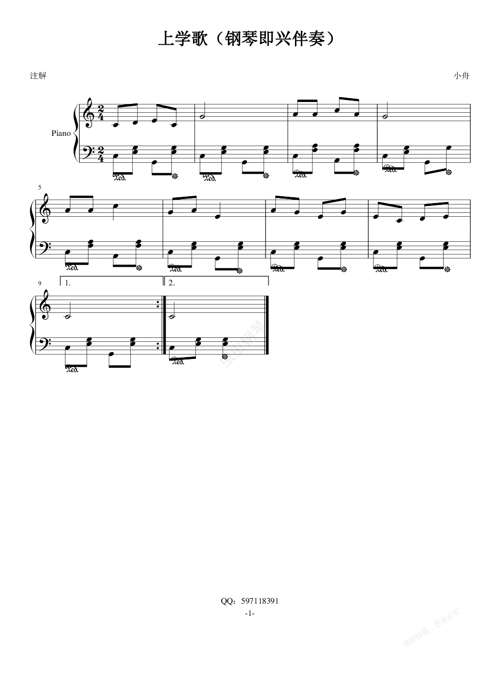钢琴谱:上学歌(钢琴即兴伴奏)